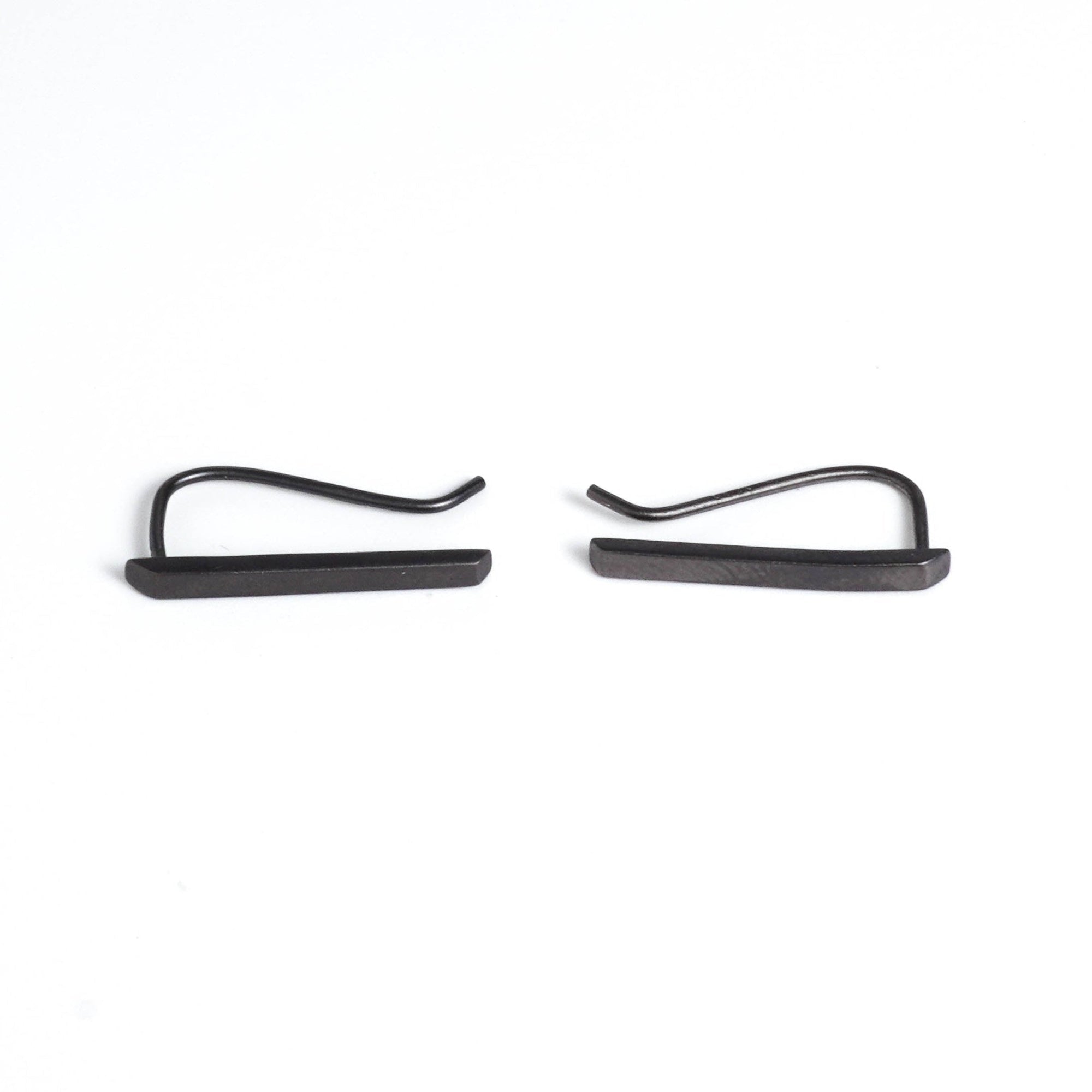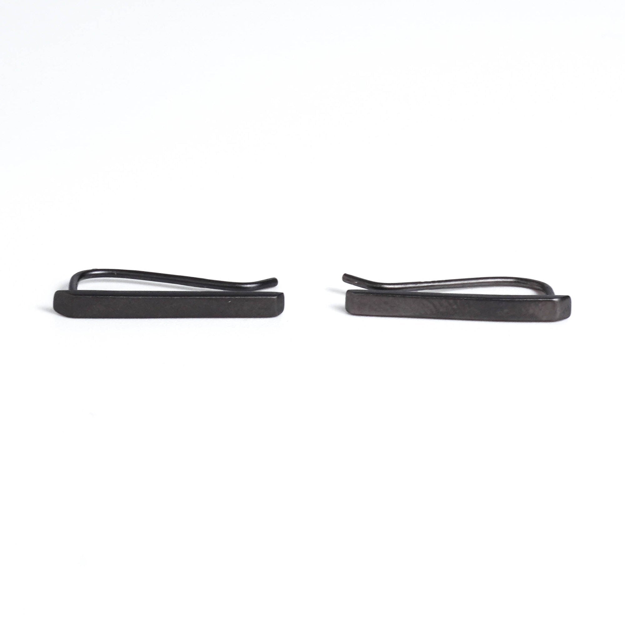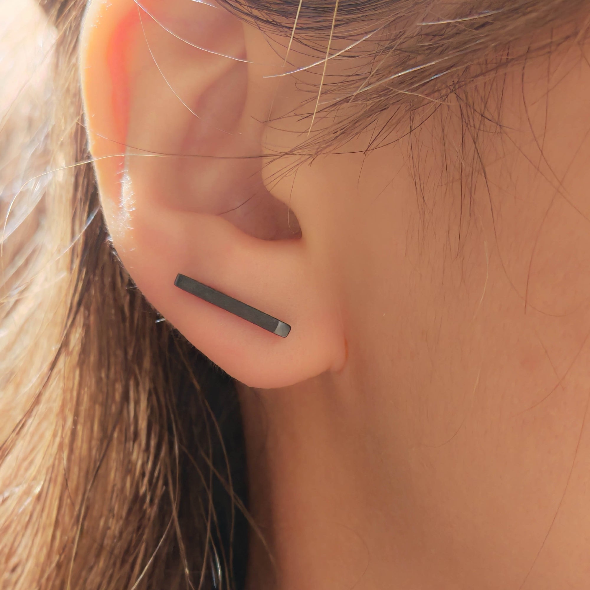 Sleek, sculptural, and quietly striking — the Noir Bar Ear Climber brings a modern edge to understated elegance. Handcrafted in 925 sterling silver and finished with a deep black gold plating, it catches the light with an effortless sophistication. Its minimalist bar silhouette glides along your ear for a clean, architectural look that pairs beautifully with any outfit. Perfect for those who appreciate jewelry that speaks softly but leaves a lasting impression. Sold as pair.