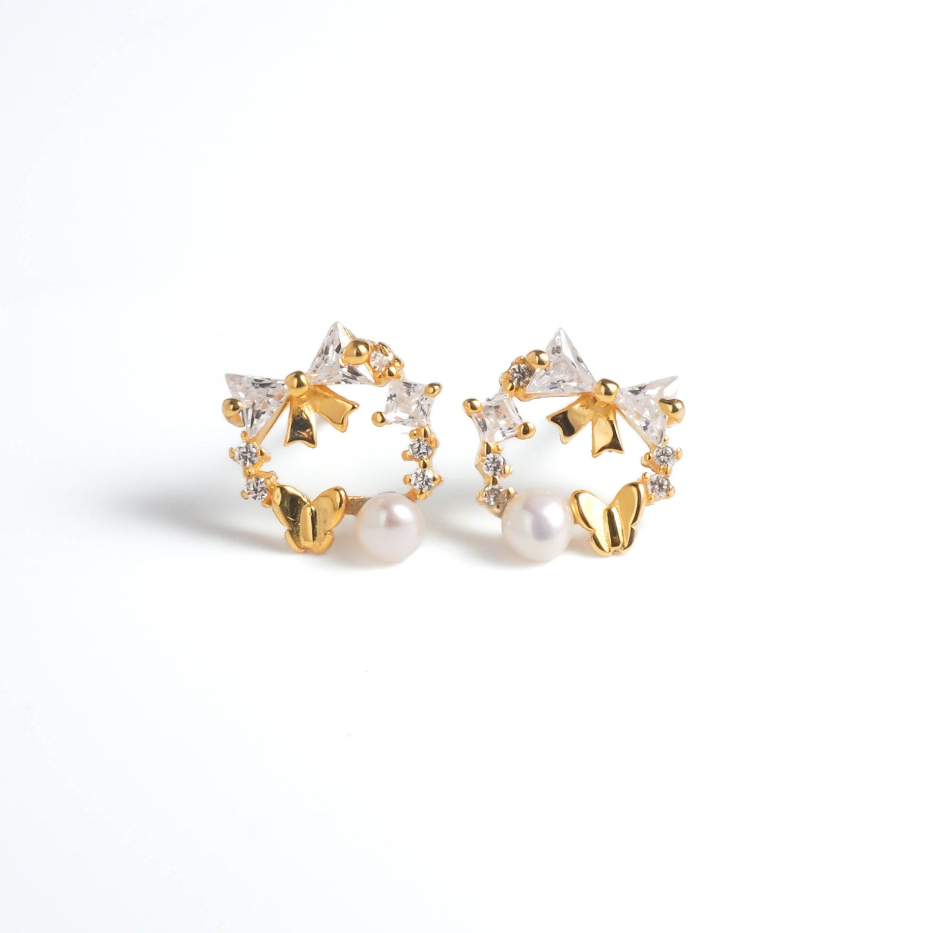 There’s something timelessly romantic about a bow—it speaks of femininity, grace, and little moments wrapped in elegance. Our Enchanted Bow Pearl Studs capture that feeling in the sweetest way, weaving together sparkling stones, delicate bows, and a soft pearl glow that feels like poetry in jewelry form. Playful yet refined, these earrings are the kind of treasure that brightens your everyday and elevates your evenings. They don’t just accessorize—they tell a story of charm, confidence, and understated luxury. Slip them on when you want your style to whisper effortless enchantment. ✨ Sold as pair.