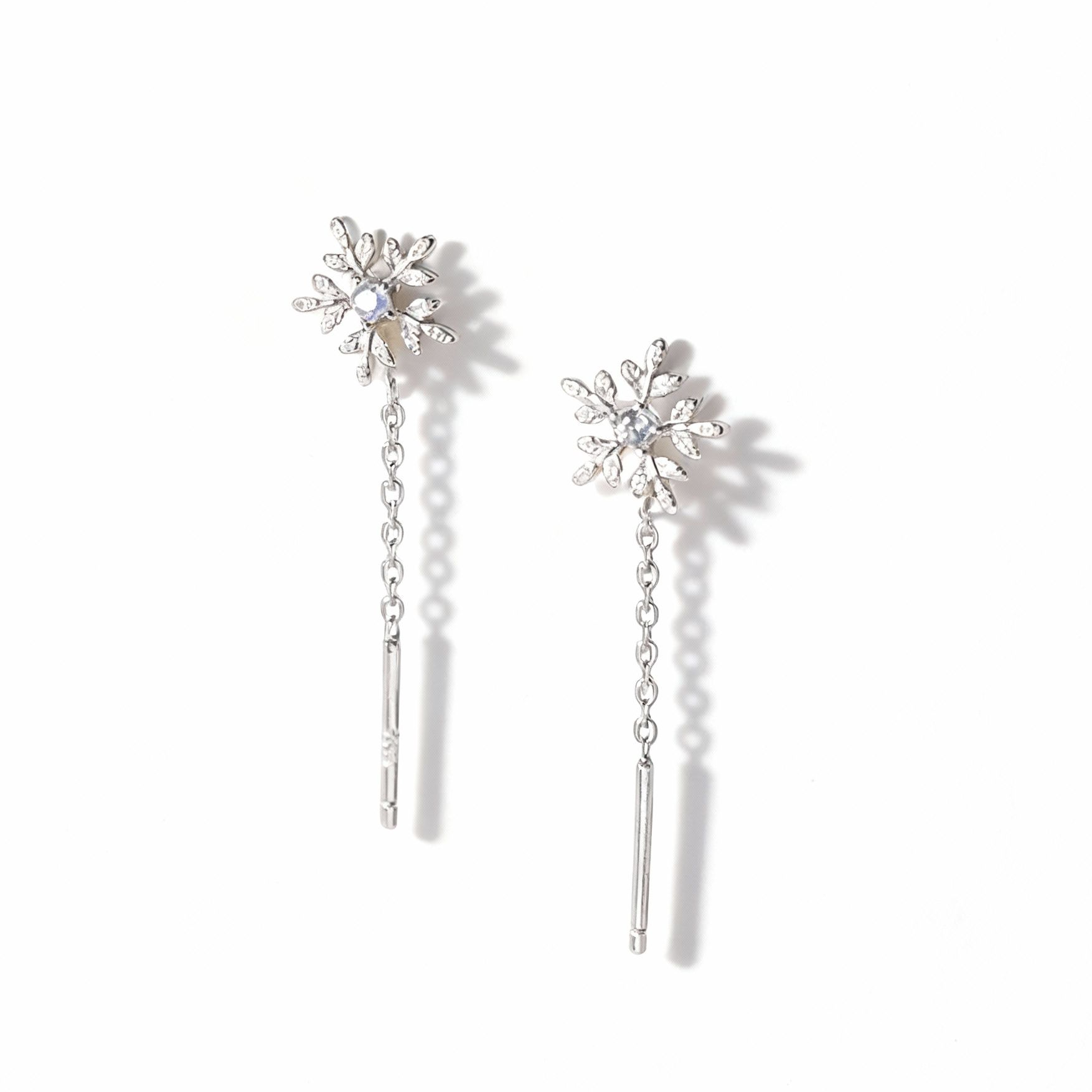 Imagine the soft glint of a perfect snowflake, caught in the crisp winter air. That's the beauty we've channeled into these stunning threader earrings. Their unique design gracefully dances with your every move, creating a cascade of shimmer that is both minimalist and breathtaking. Perfect for adding a touch of seasonal sparkle to your holiday party outfits or elevating your cozy everyday style.