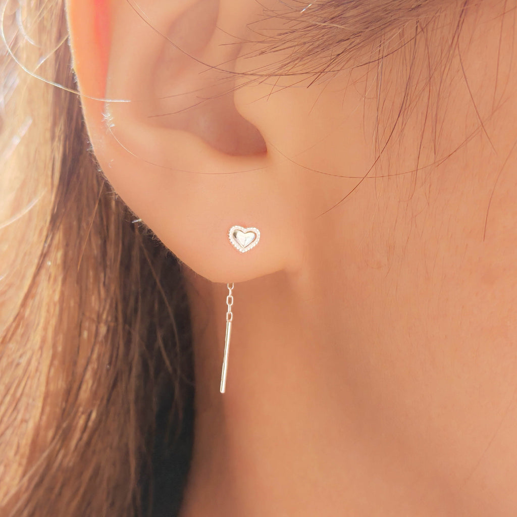 Sweet, subtle, and effortlessly elegant — our Mini Heart Threader Earrings are the perfect way to add a touch of love to your everyday style. Crafted from 925 sterling silver, these delicate heart threaders glide gracefully through your ears, creating a sleek and minimalist look that’s both modern and romantic. Ideal for layering or wearing solo, they’re loved by those who appreciate simple elegant jewelry with a hint of charm. Whether you’re dressing up or keeping it casual, these dainty silver heart earrings are a timeless piece that complements any outfit beautifully. ✨ Fall in love with minimal elegance — one heart, endless sparkle. Sold as pair.