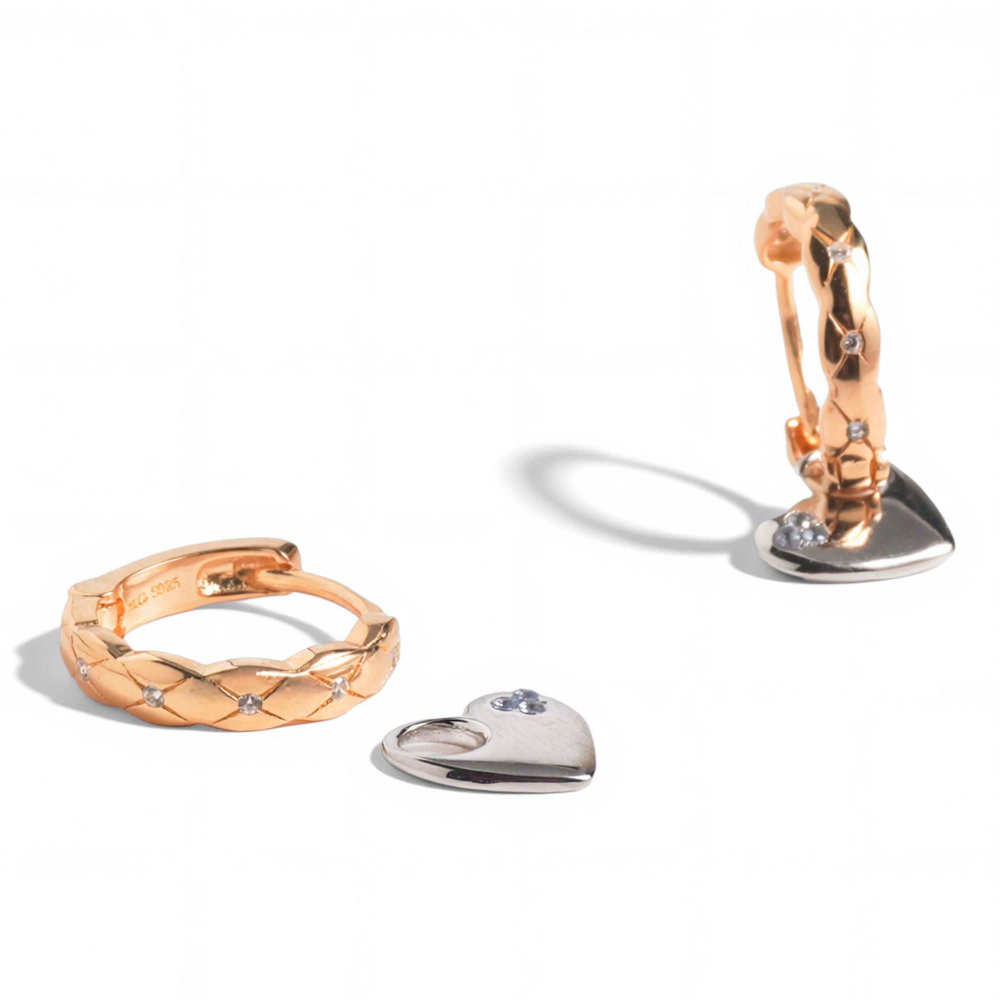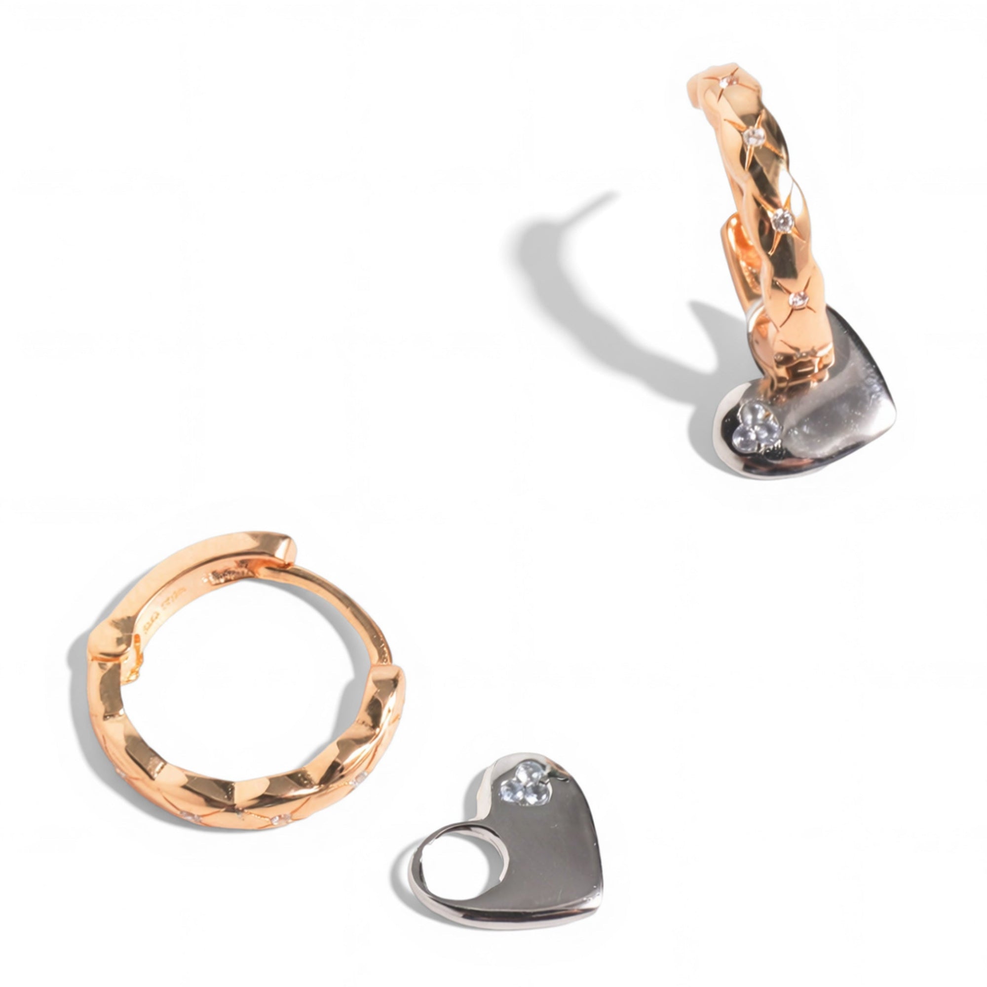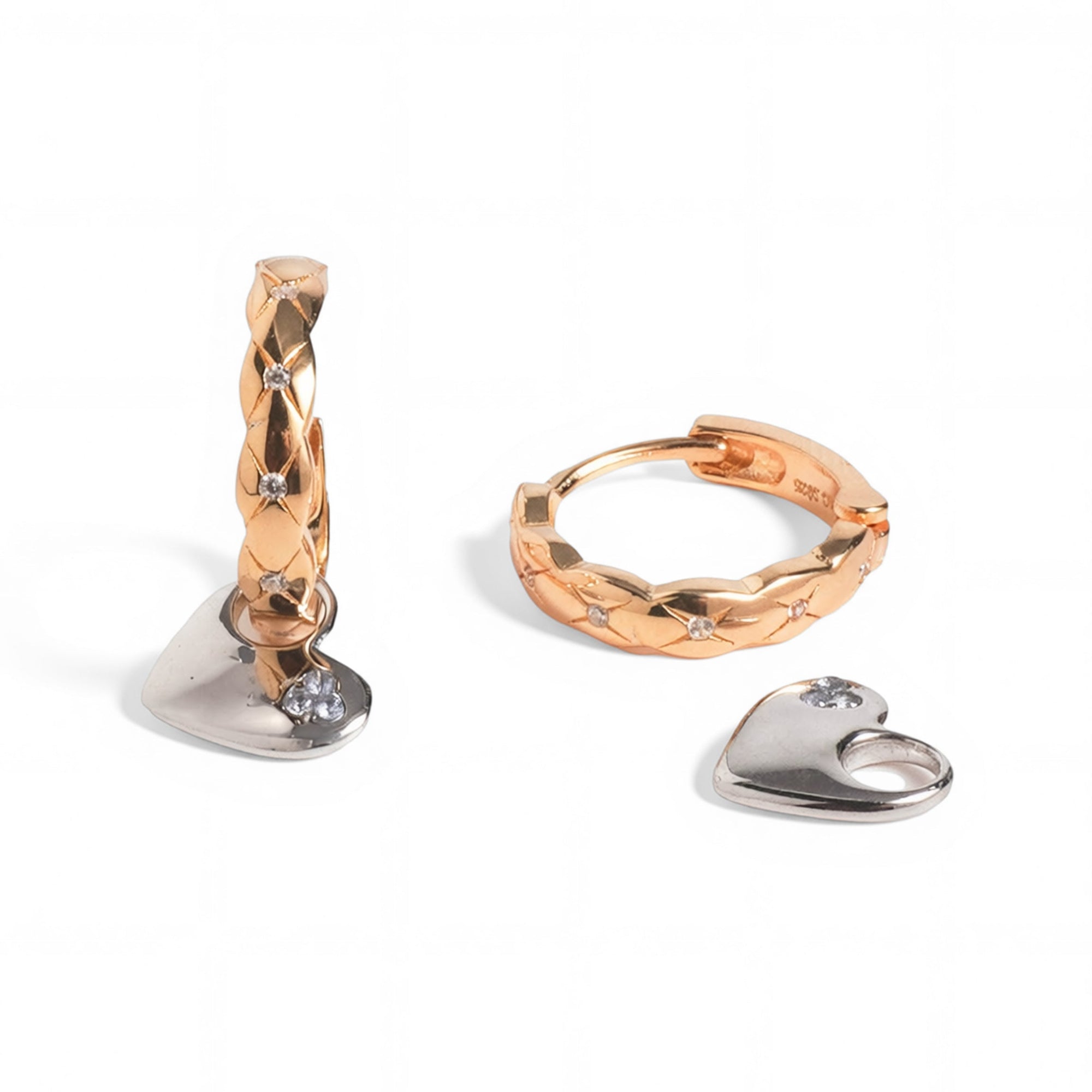 One pair, two completely different moods. Our Dual Charm Heart Huggies feature champagne gold huggies paired with a removable silver heart charm — wear them minimal or add the charm when you want extra shine. Designed for versatility, these earrings make styling effortless while giving you more ways to wear them.