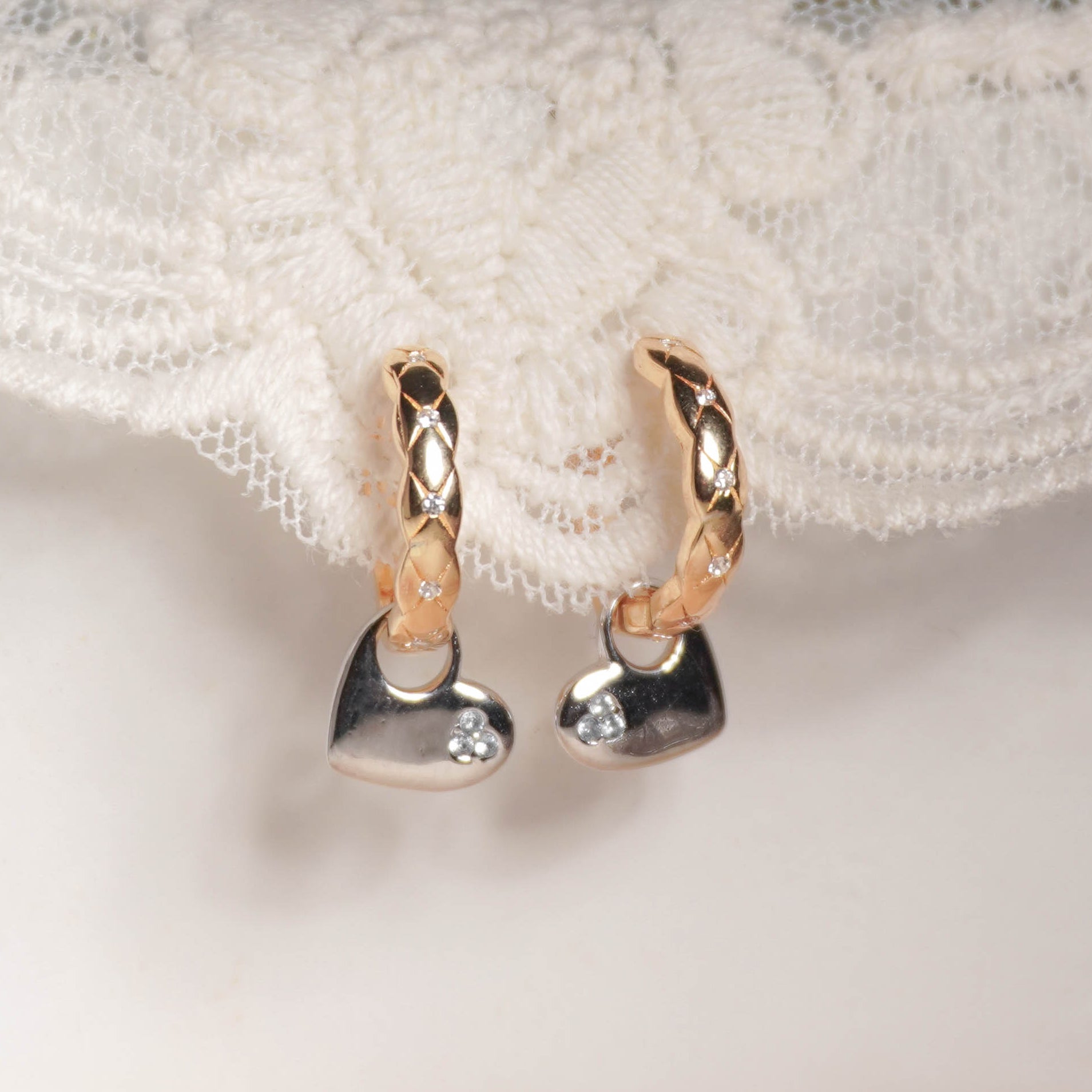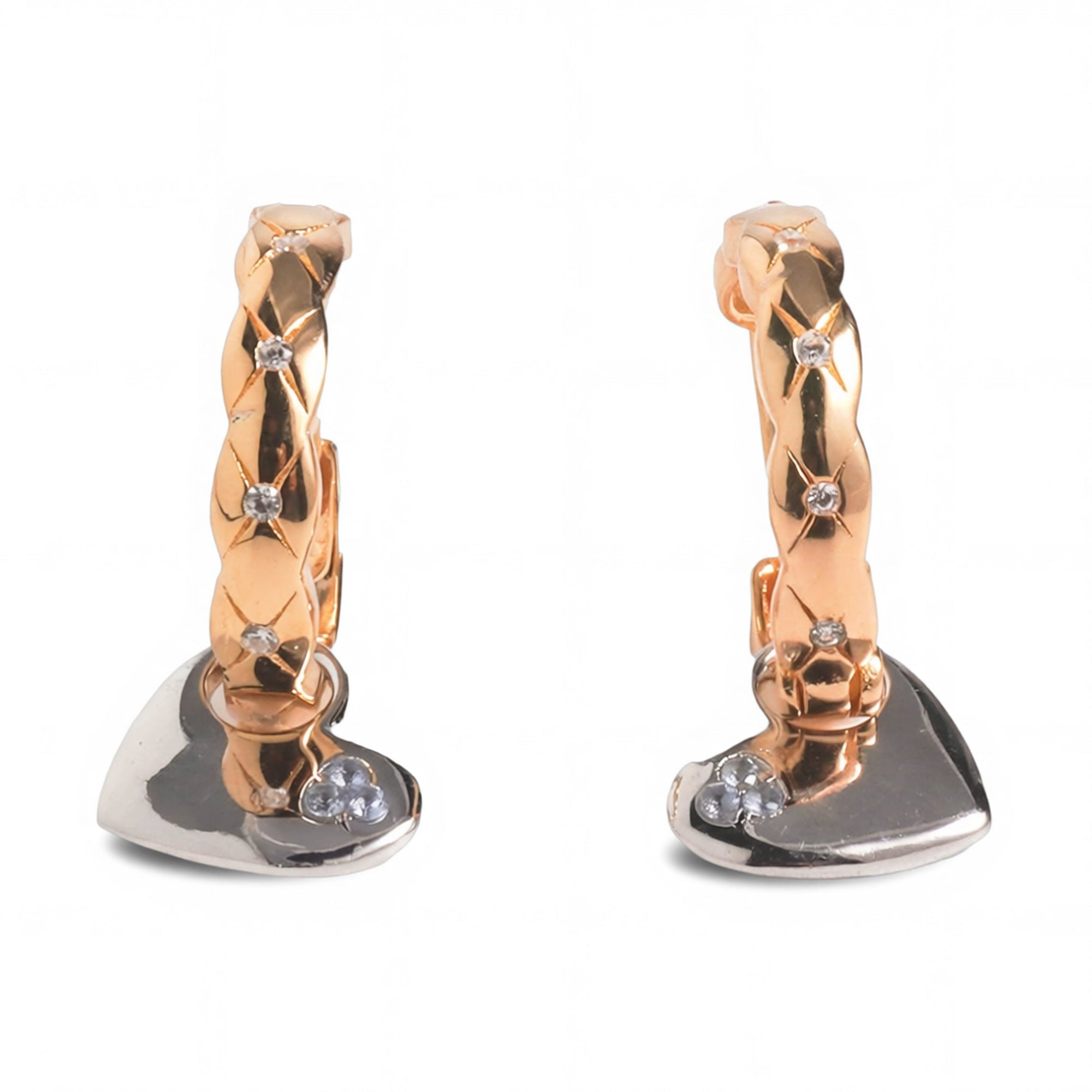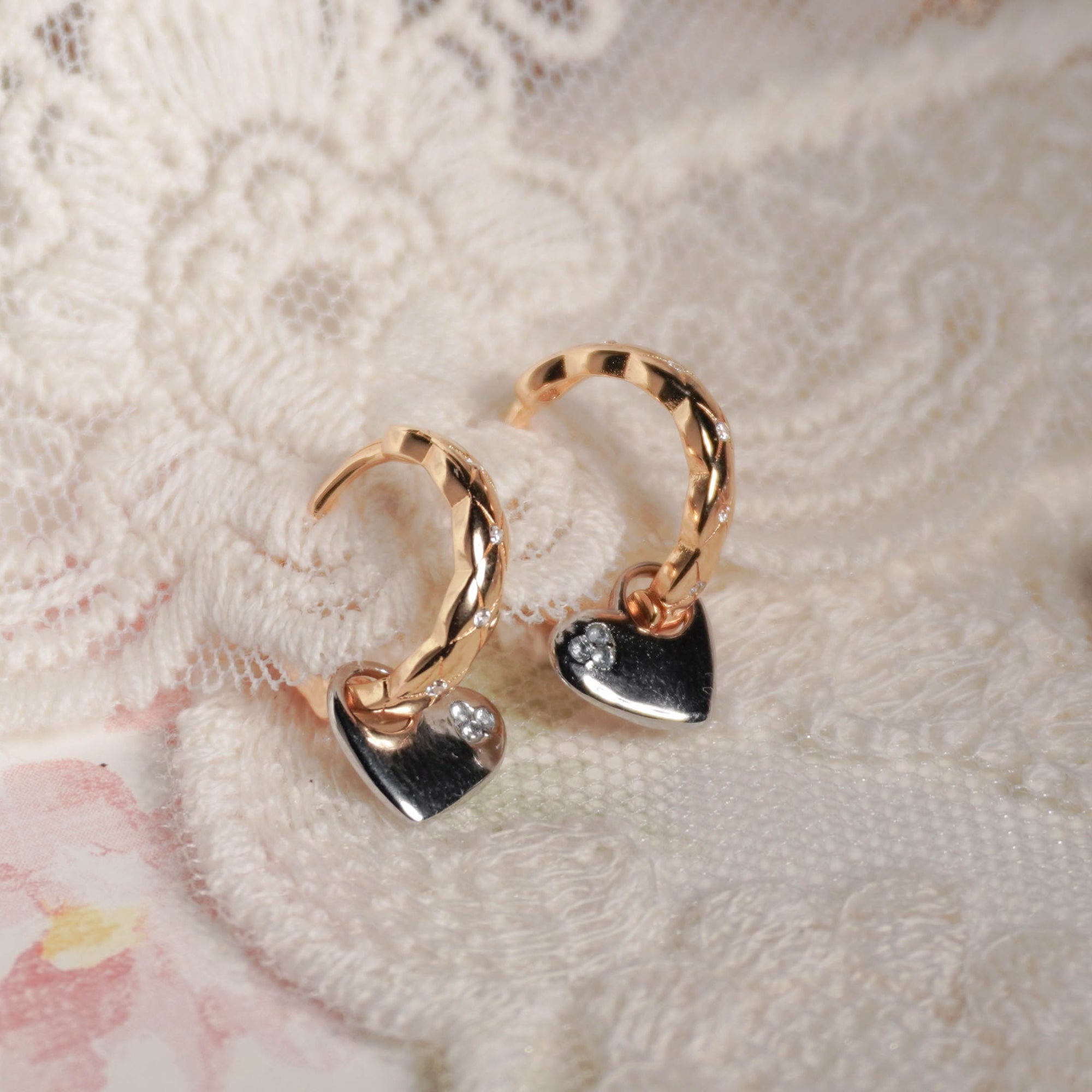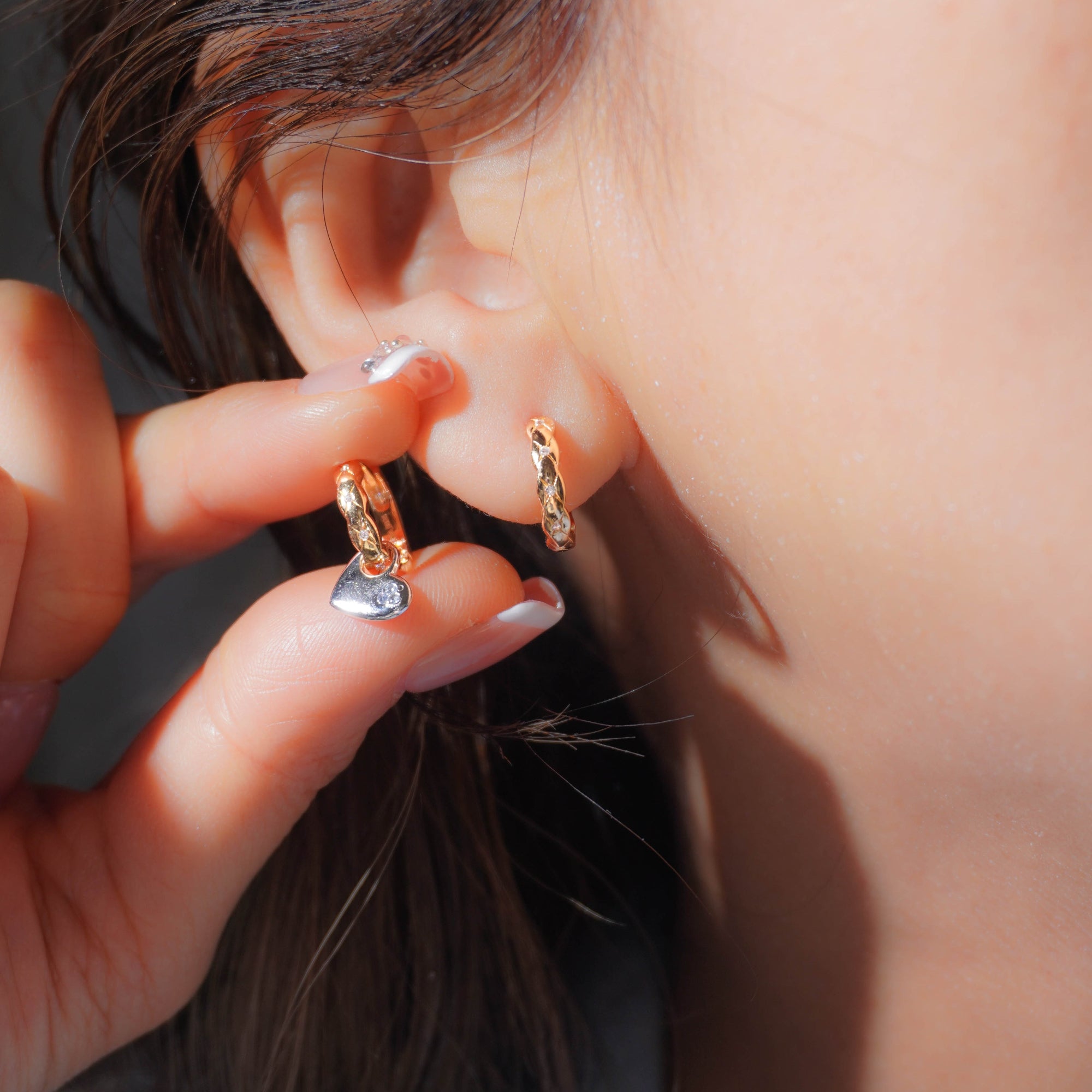Dual Charm Heart Huggie Earrings