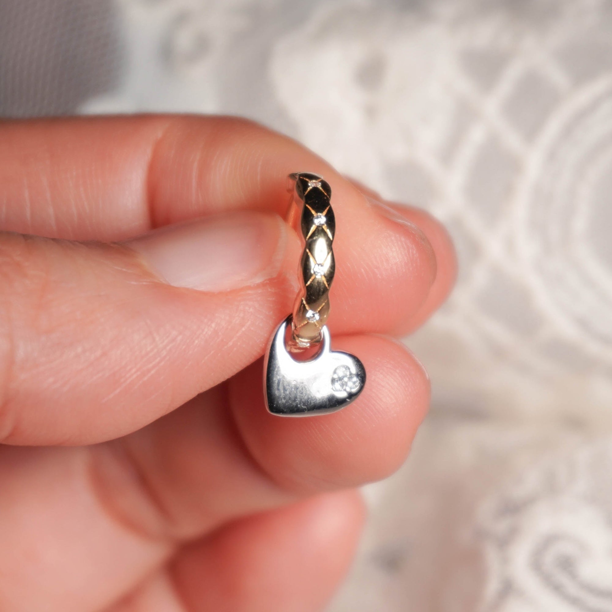 Hoop Size: 0.2 x 1.3 cm; Heart Charm: 1 cm