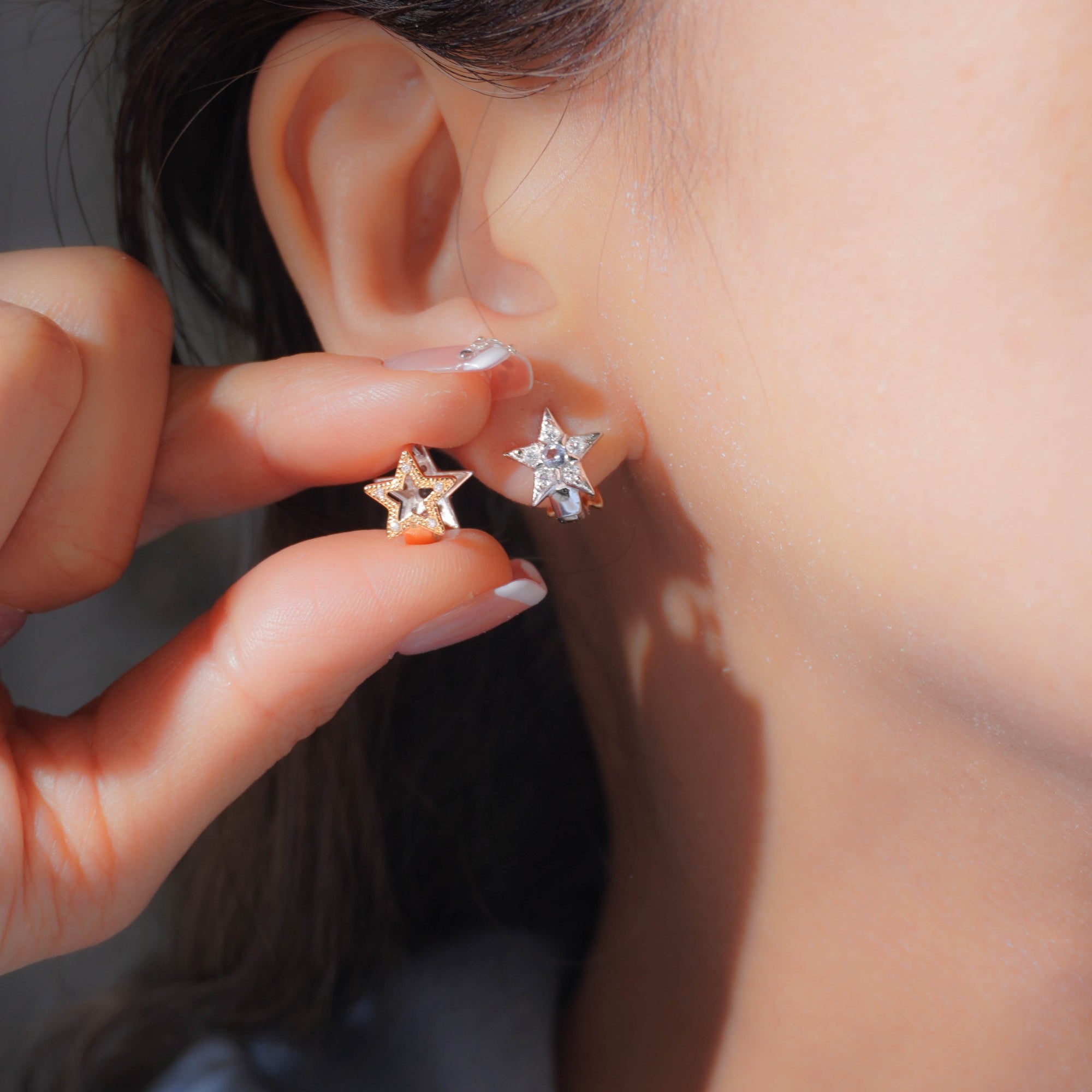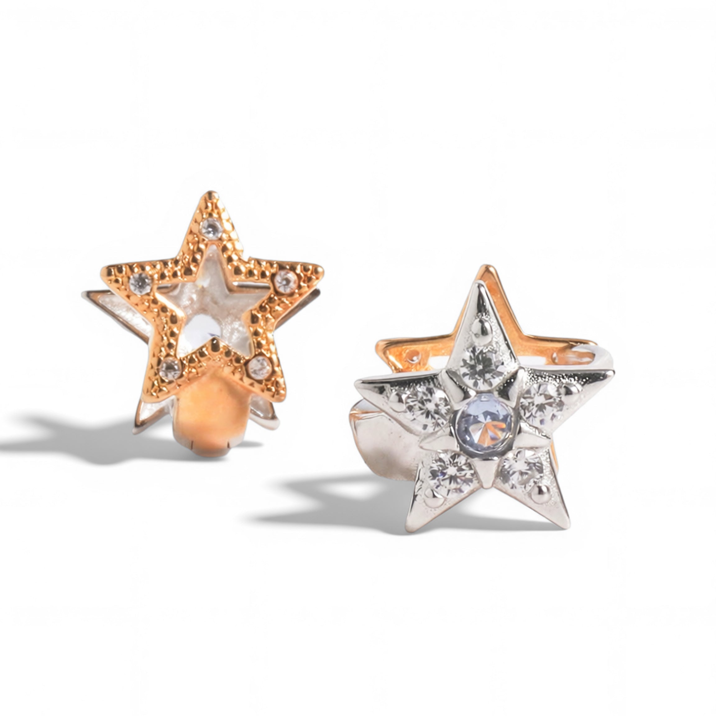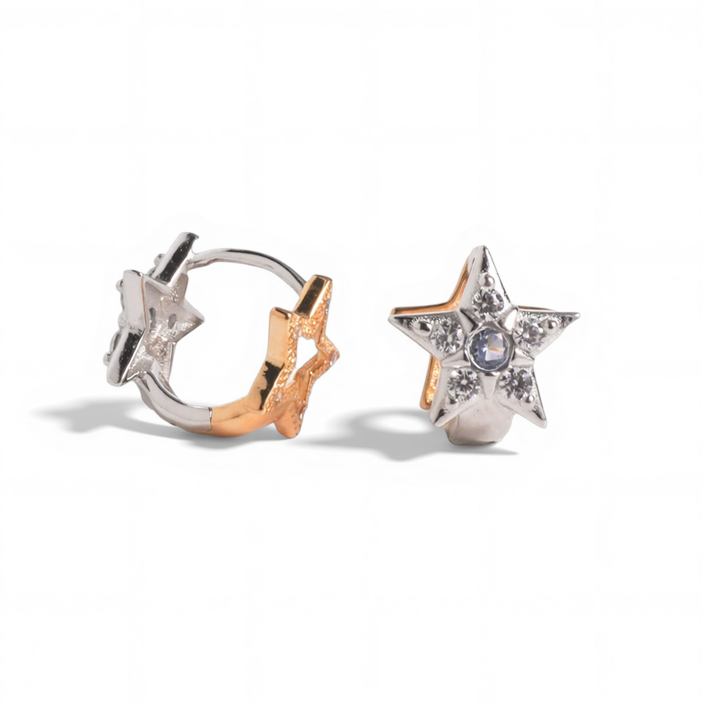 Dual Radiance Star Huggie Earrings