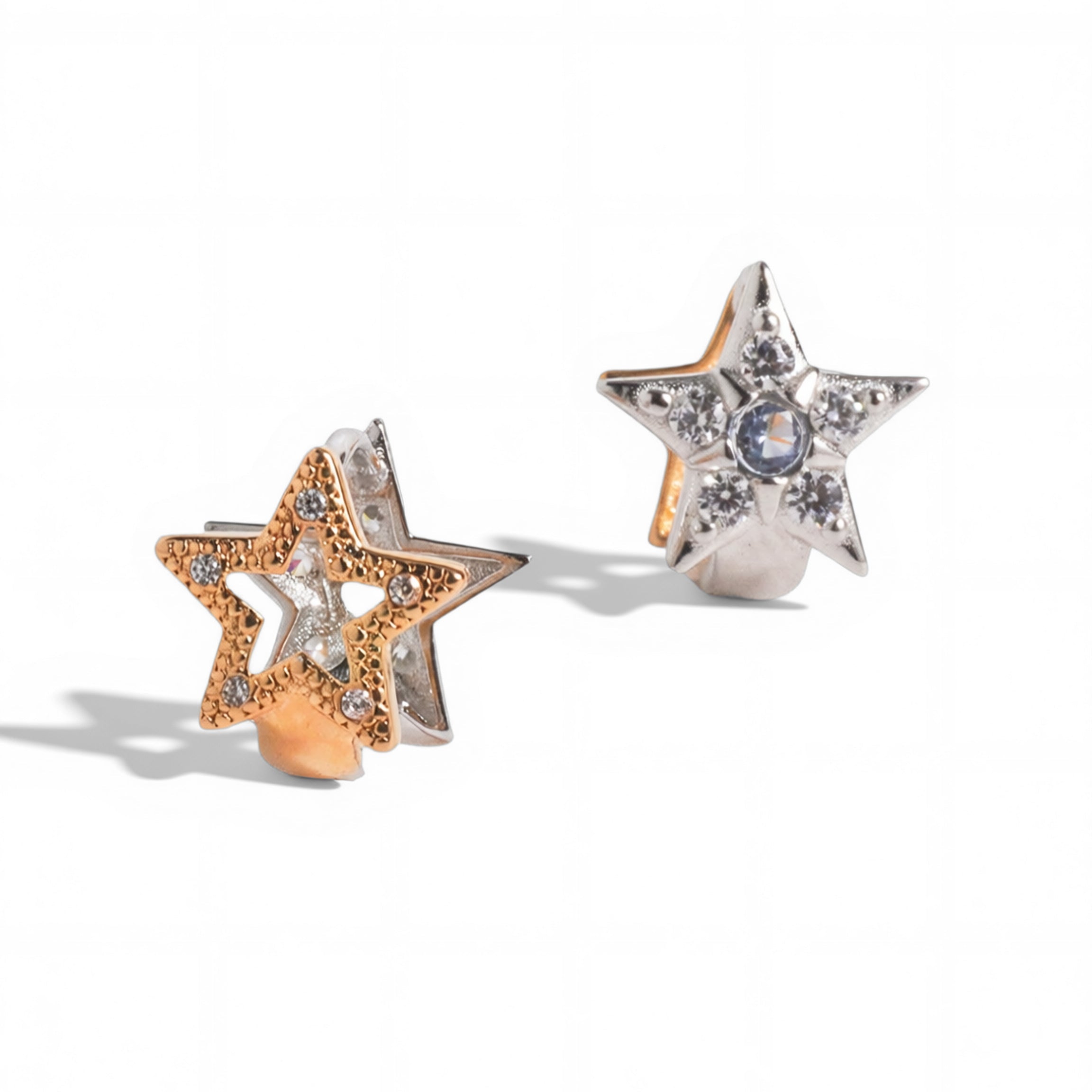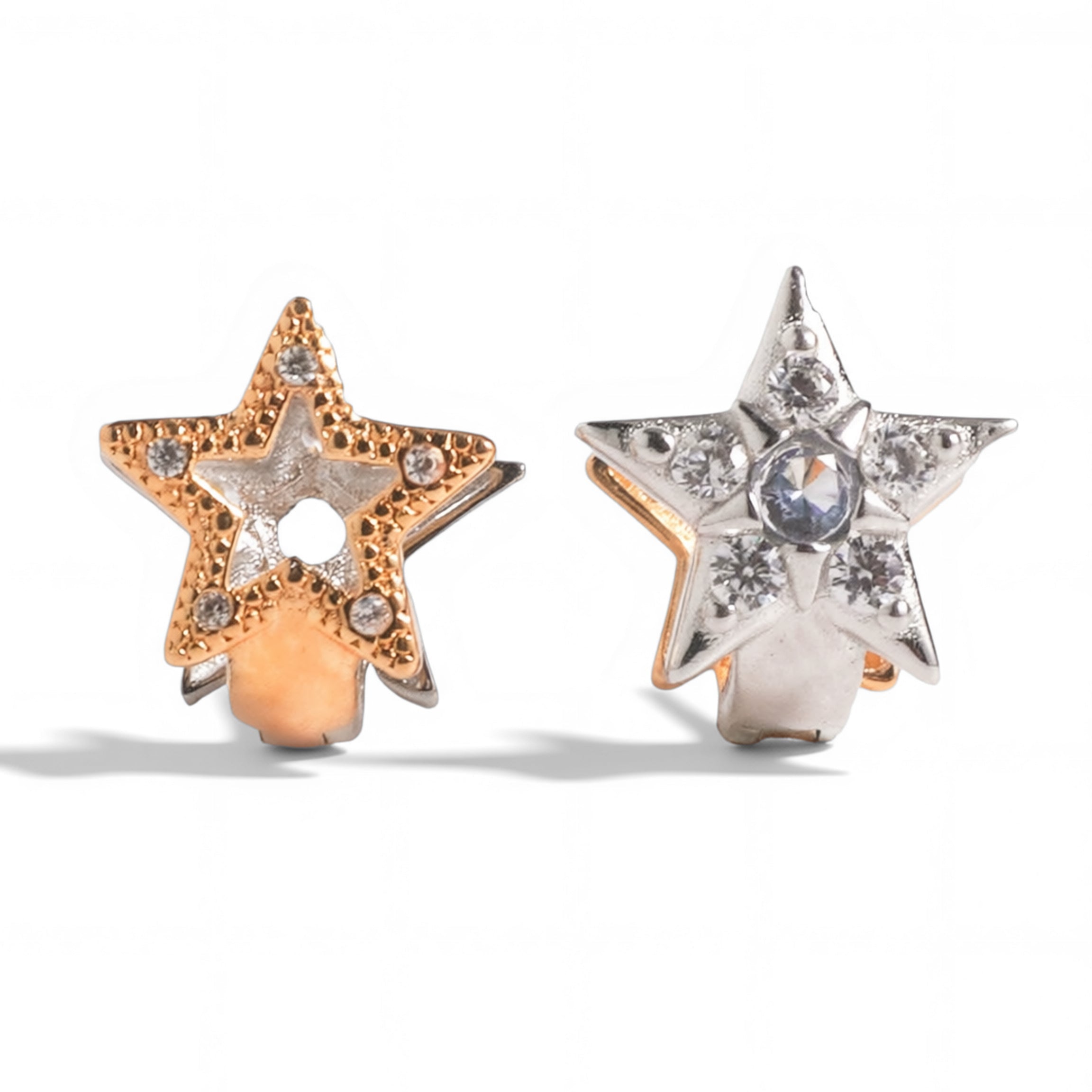 Meet the earrings that solve the gold or silver dilemma. Our Dual Radiance Star Huggie Earrings feature a clever two-tone design — champagne gold on one side with a delicate star cut-out, and polished silver on the other with sparkling CZ stones. Simply flip to match your mood, outfit, or jewellery stack. Perfect for both warm and cool skin tones, these versatile earrings give you two looks in one without buying extra pieces.