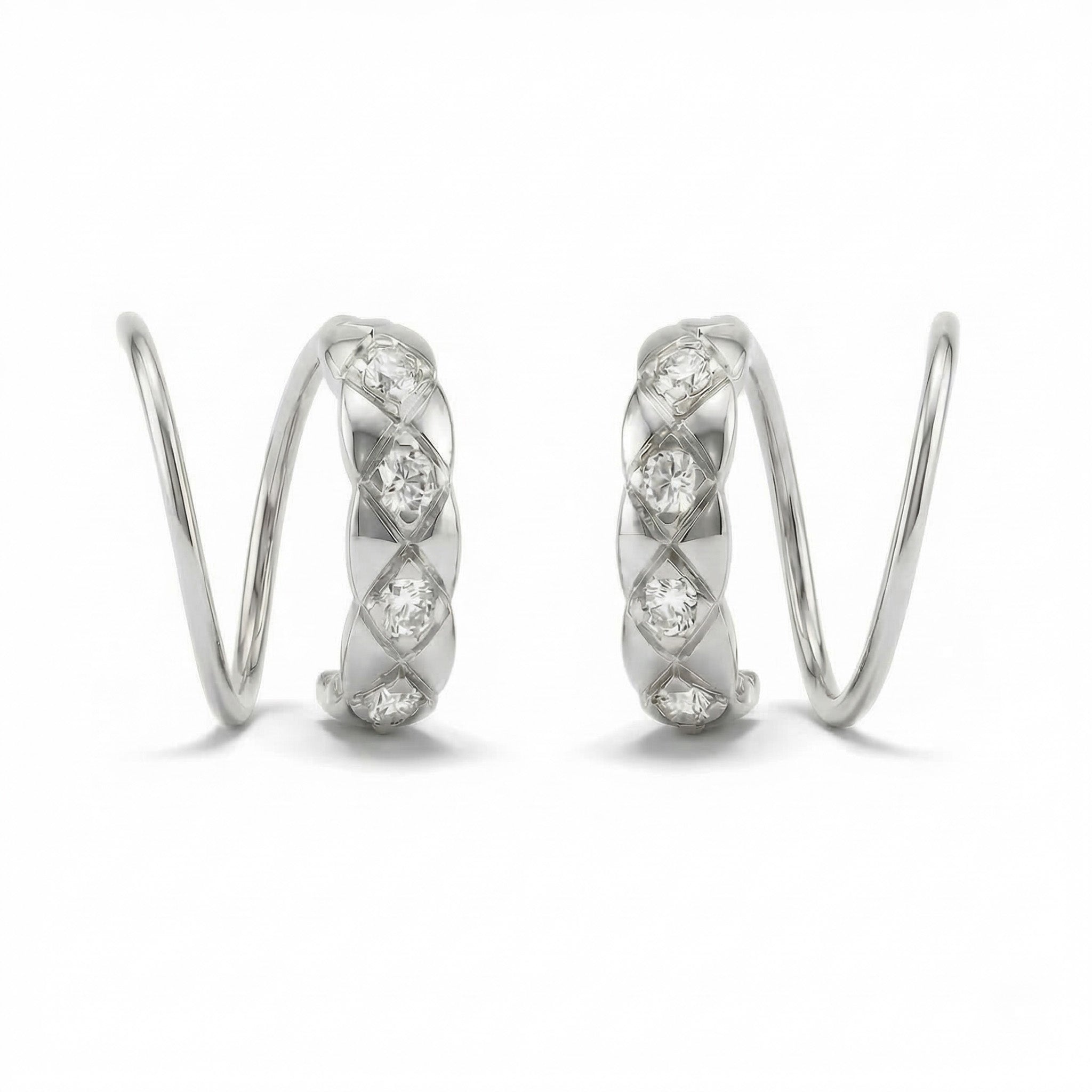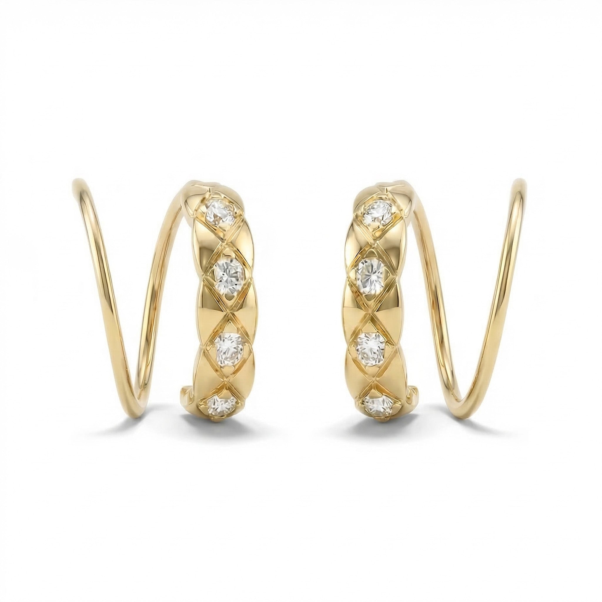 Quilted Pave Spiral Hoop Twist Earrings