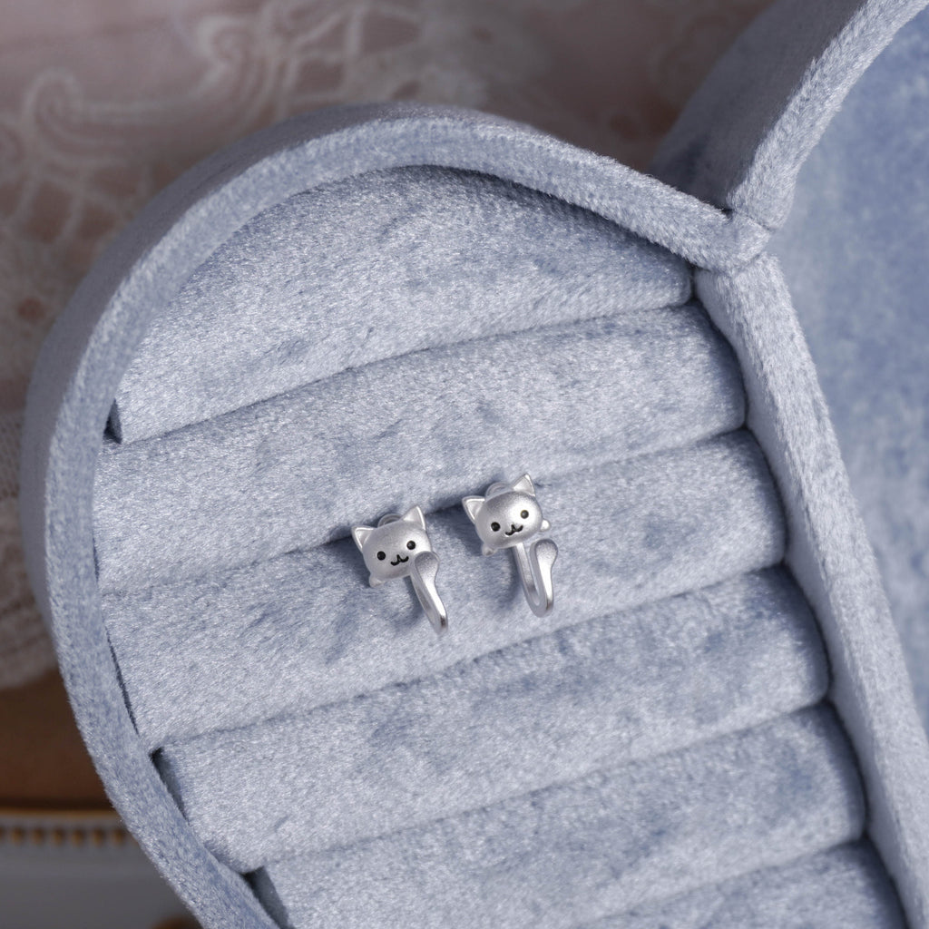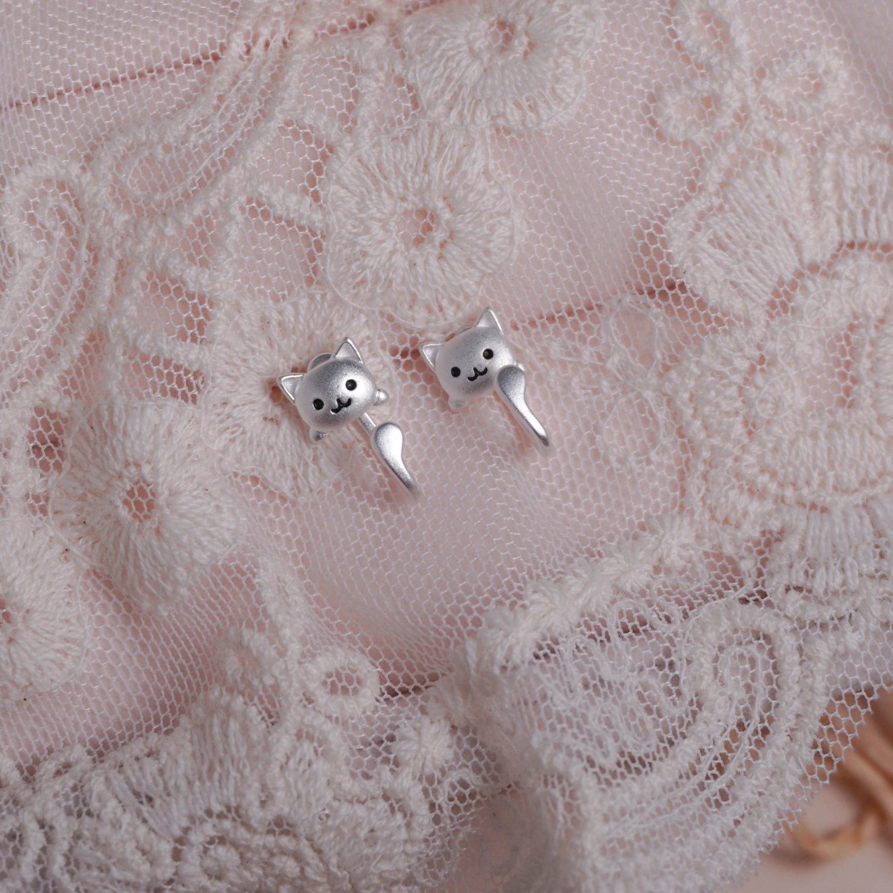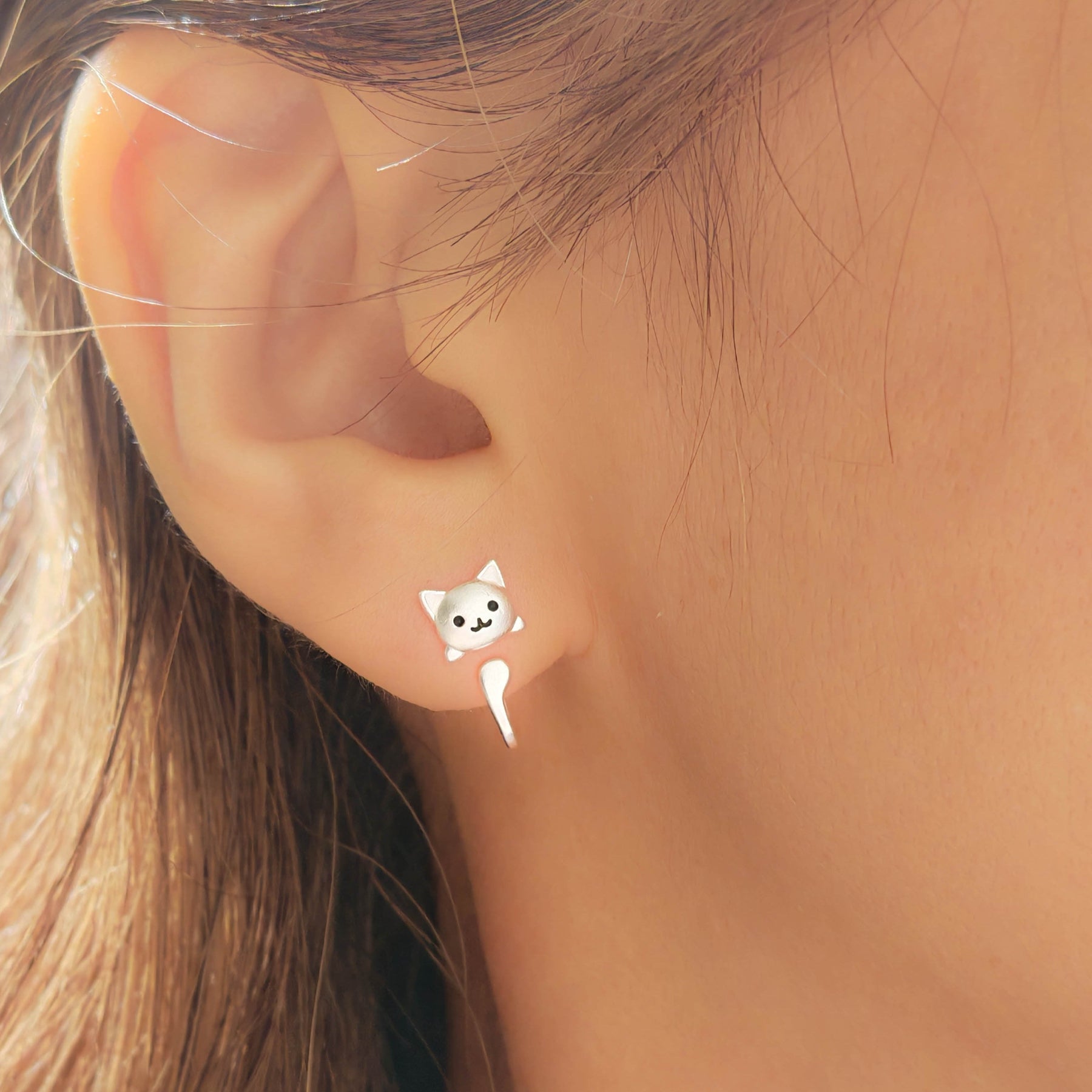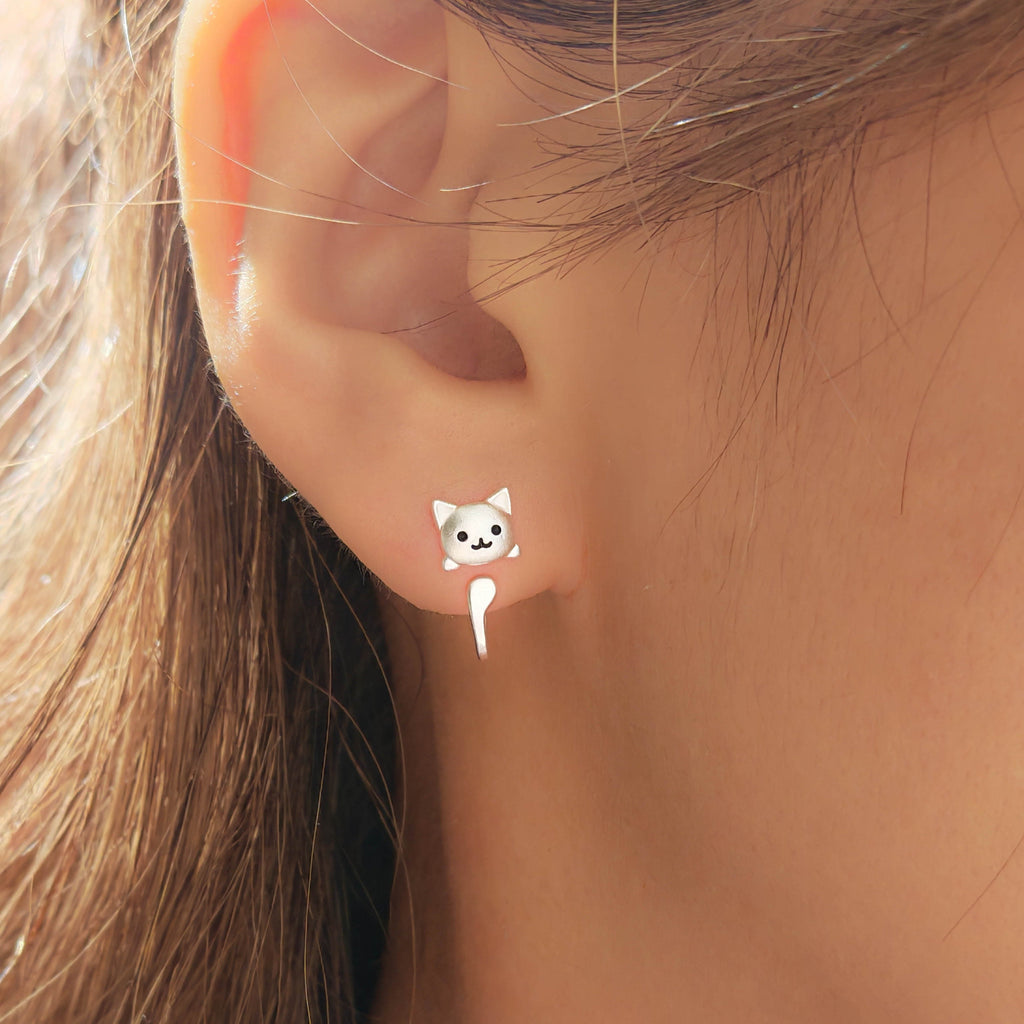 The modern ear jacket design adds a chic twist to classic studs, wrapping gently around your ear for a trendy layered effect without needing multiple piercings. Whether you're dressing up for a casual brunch or adding a fun detail to your everyday outfit, these silver cat earrings are your perfect match.