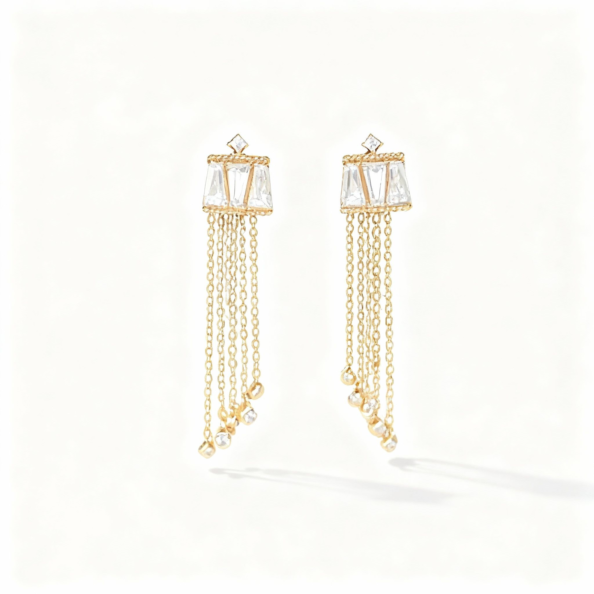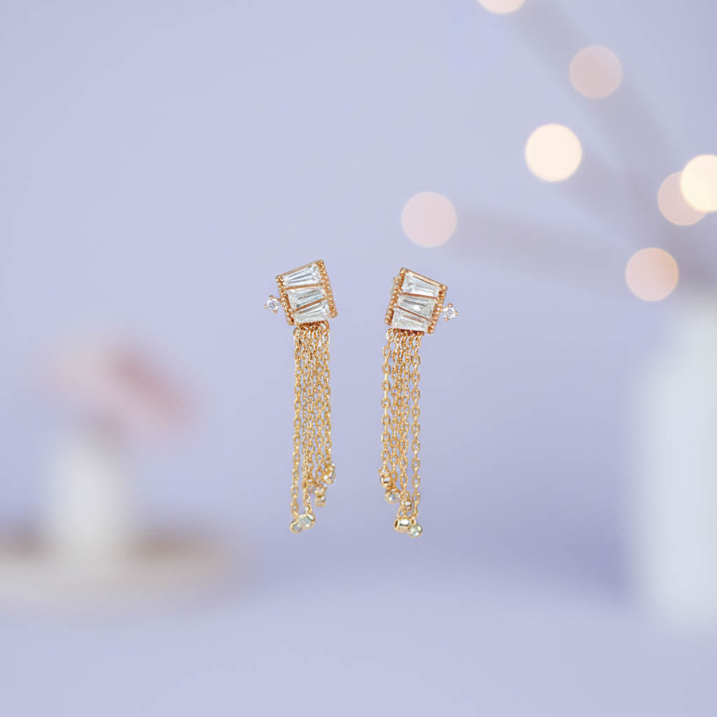 Versatile Design: Wear the baguette studs alone for a minimalist, chic office look, or attach the delicate "shower tail" chain fringe to transform them into glamorous shoulder-grazing drop earrings for a night out.