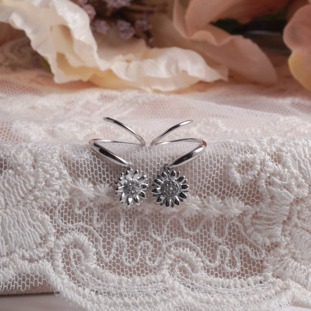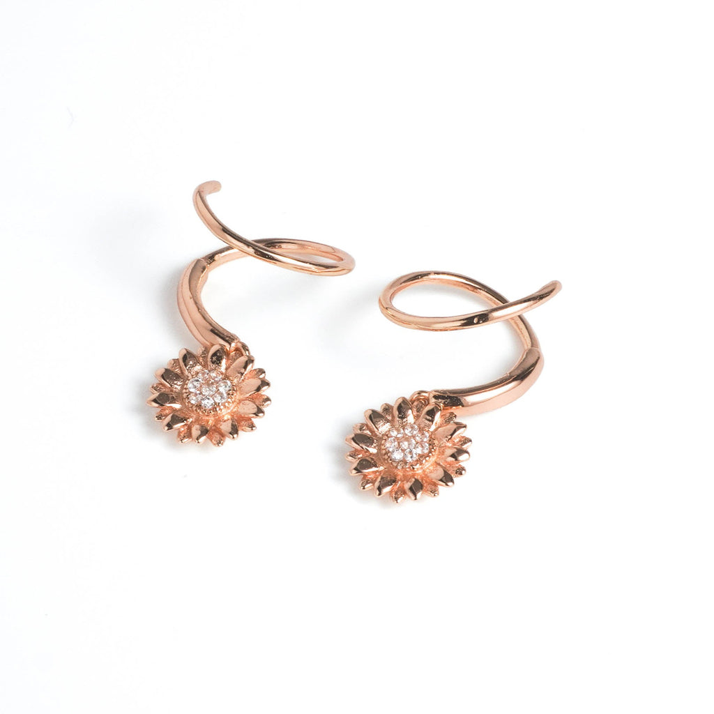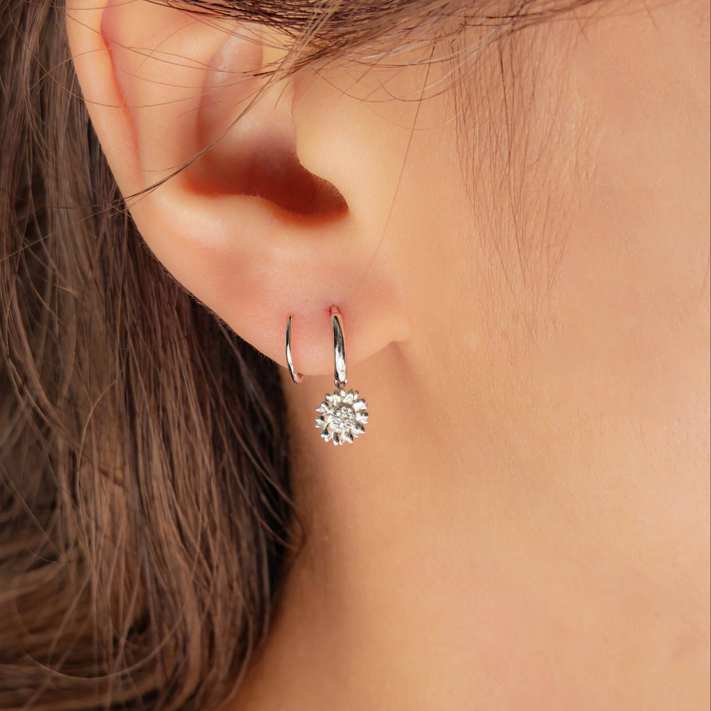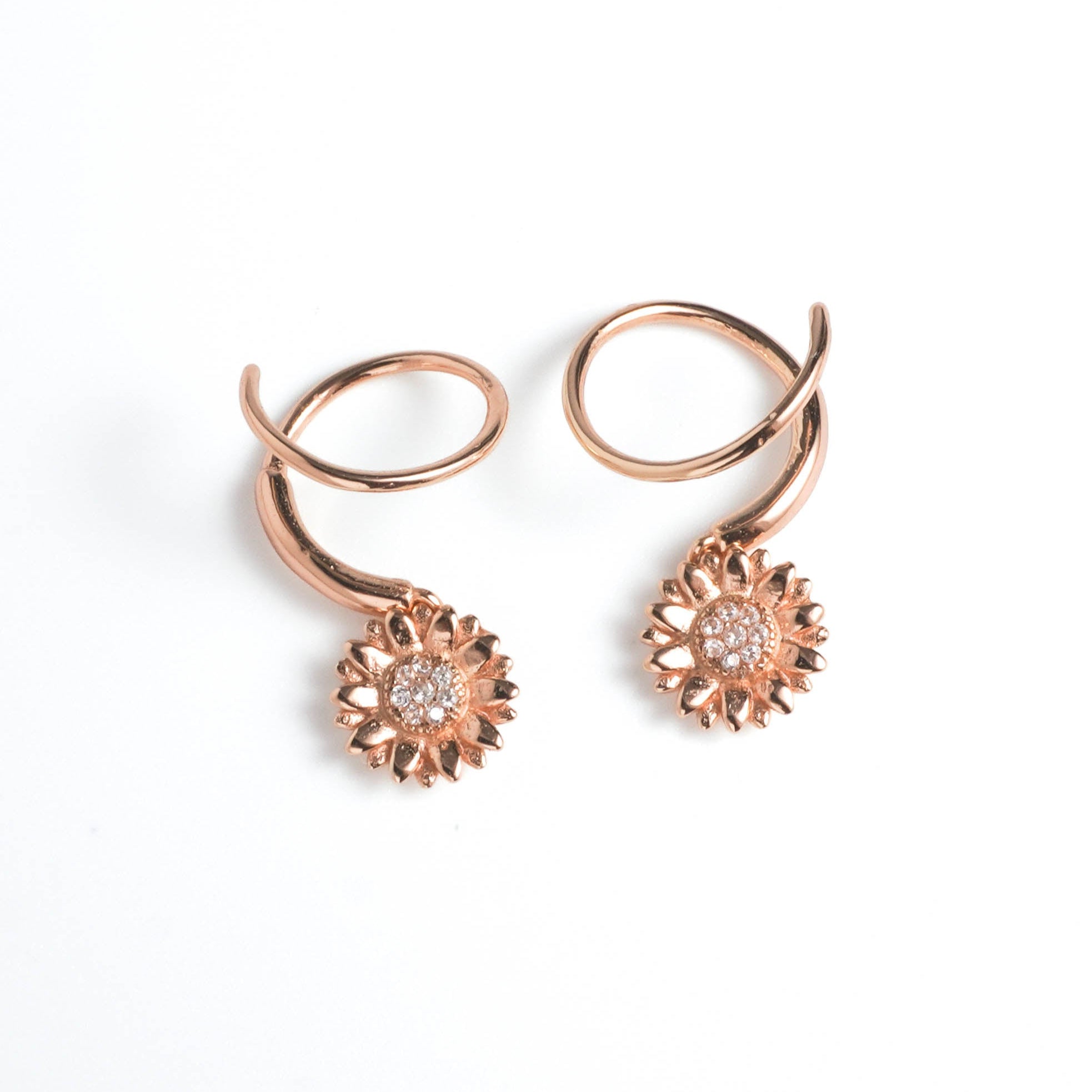 Carry a little sunshine with you wherever you go. These Sunflower Spiral Hoop Twist Earrings are part of our signature 1 piercing into 2 collection, designed to give you the look of a layered style with just one piercing. The dainty sunflower dangles catch the light as you move, adding a touch of warmth and effortless charm to your everyday look. Perfect for anyone who loves jewelry that feels both playful and elegant, they’re a reminder that even the smallest details can brighten your day. Sold as pair.
