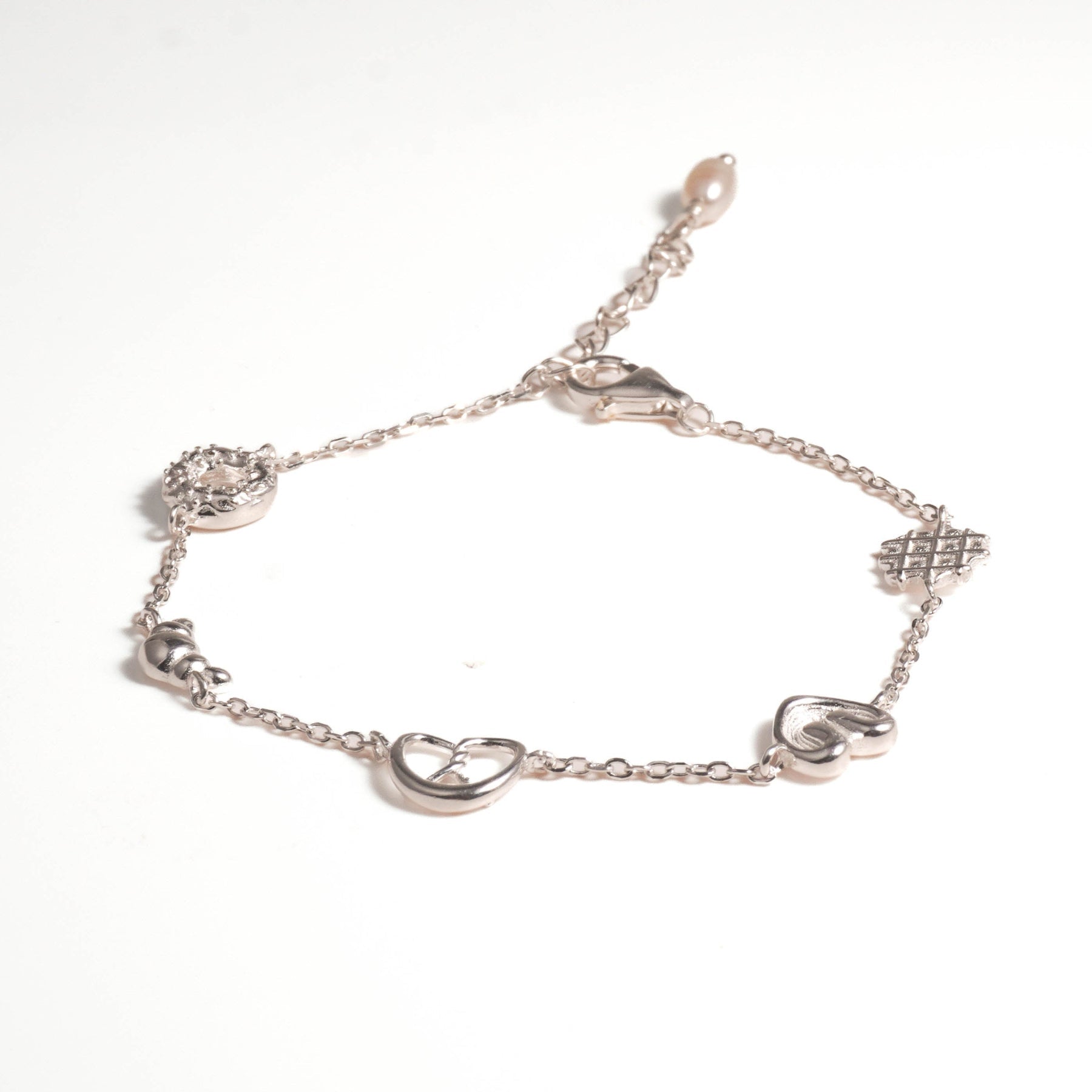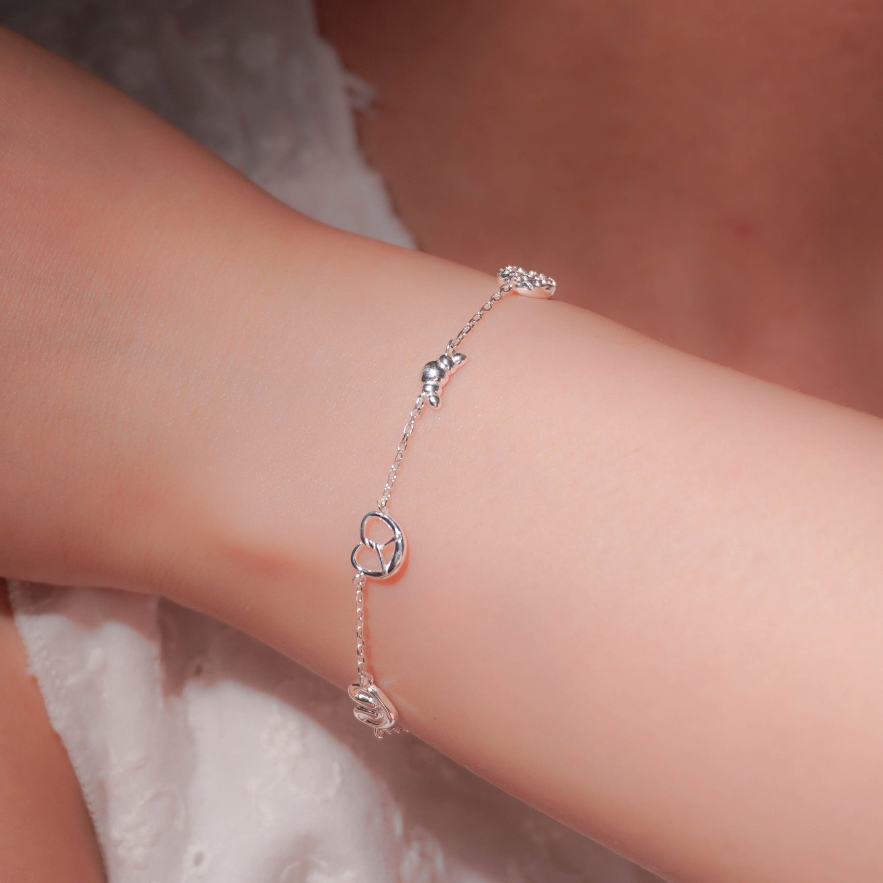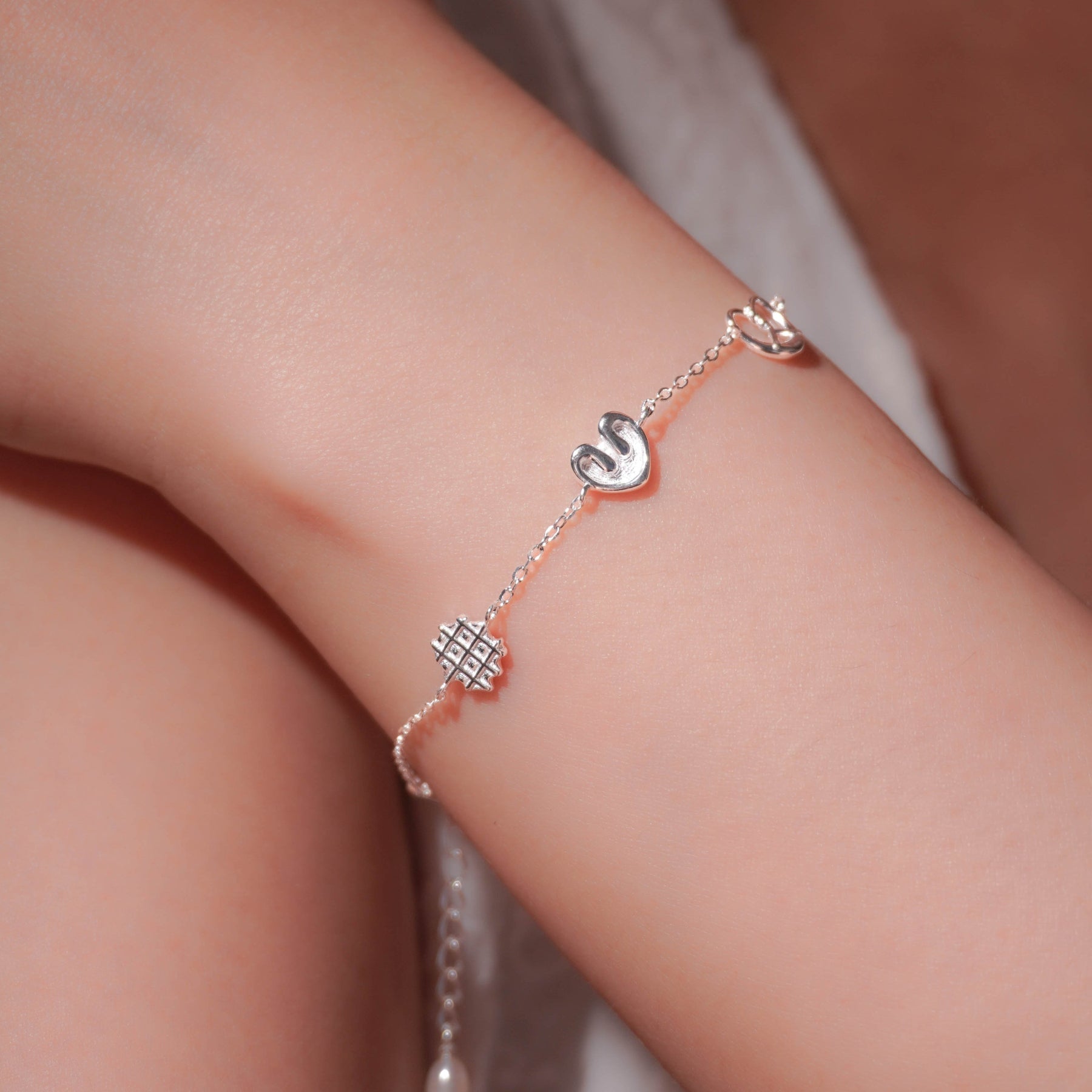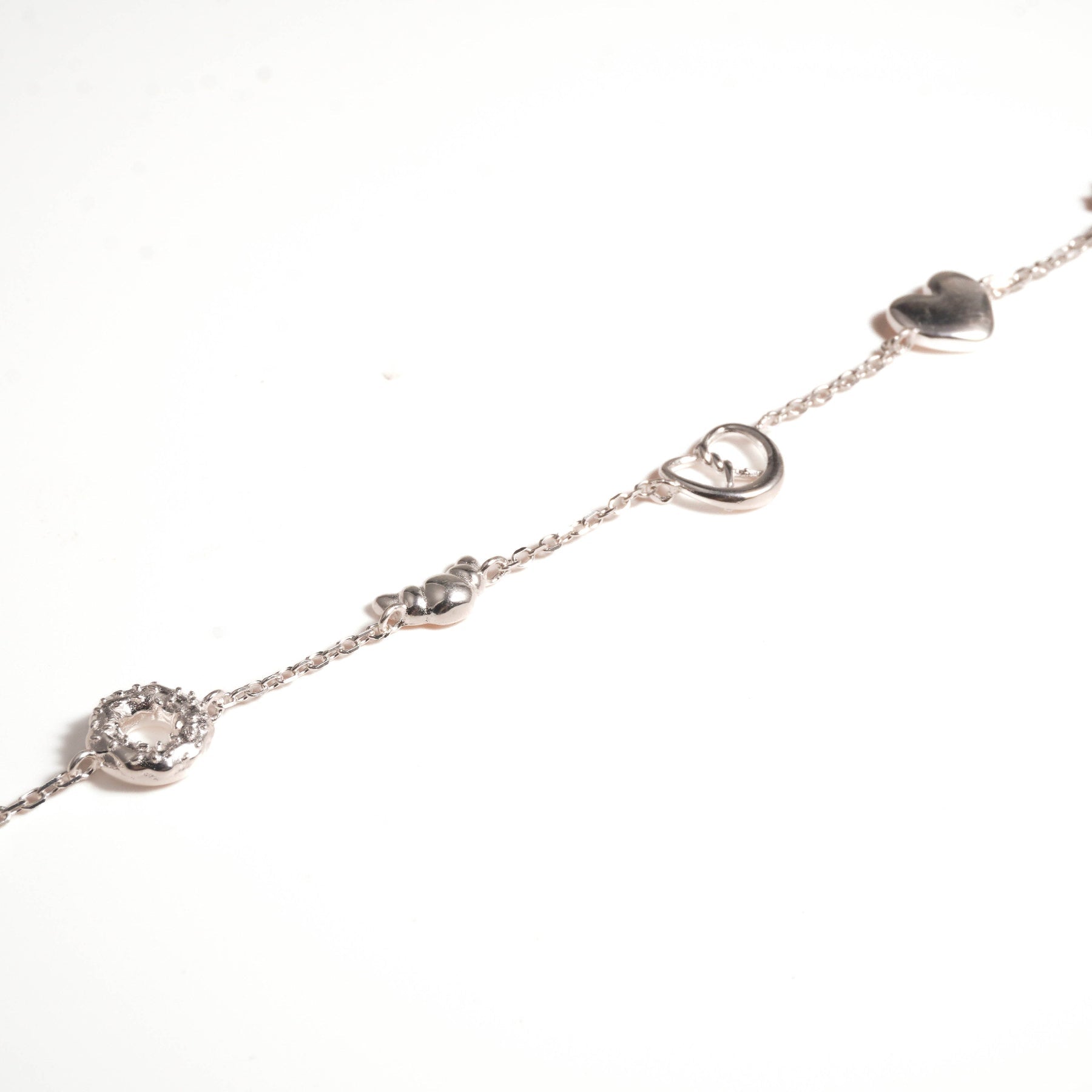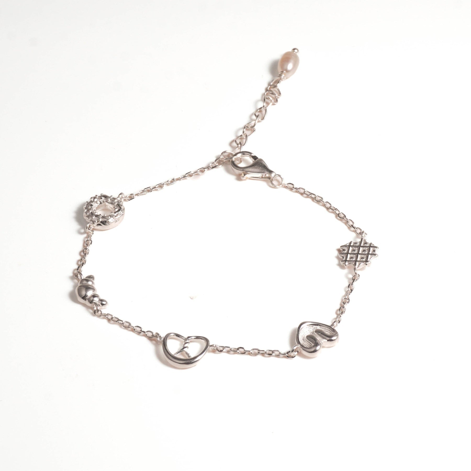 Indulge in a little everyday sweetness with our Sweet Cravings Charm Bracelet, handcrafted in skin-friendly 925 sterling silver. This adorable piece features five dainty bakery-inspired charms that bring cozy café vibes to your wrist: a glazed donut, a crisp waffle, a swirly palmier, a petite croissant, and a pretzel twist. Whether you're a dessert lover or just looking for something playful and unique, this bracelet is the perfect treat-yourself (or gift!) piece. Its whimsical design adds a sprinkle of charm to any outfit—casual or cute. ✨ Perfect for those who love food jewelry, dainty silver accessories, and charm bracelets with personality ✨ A thoughtful gift for foodies, pastry fans, or anyone who can’t resist a good brunch aesthetic