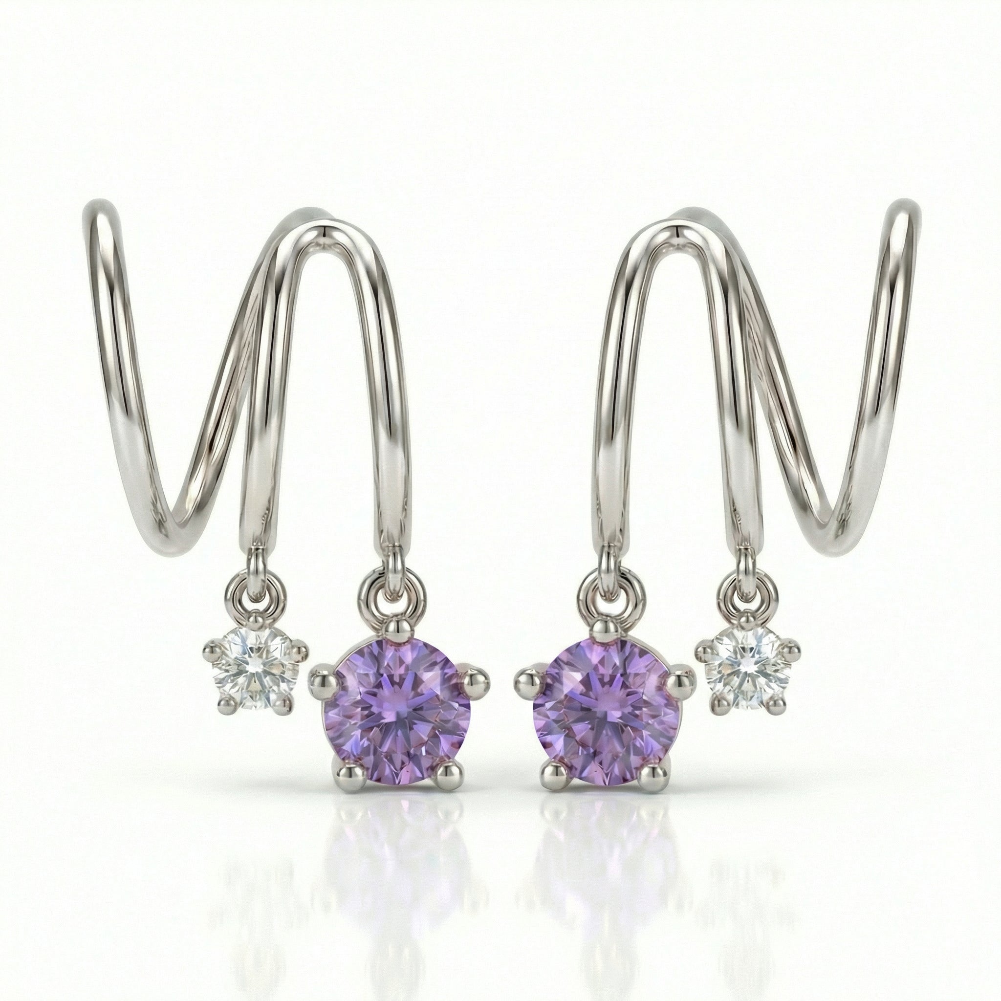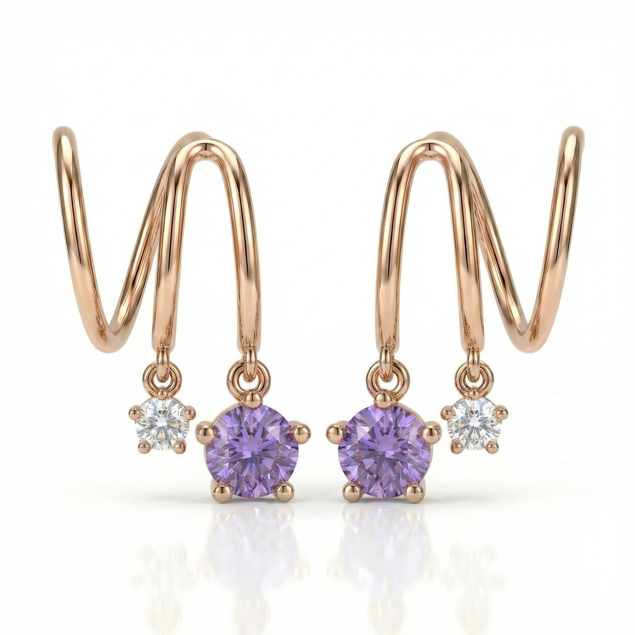 Amethyst & Cubic Zirconia Spiral Hoop Twist Earrings