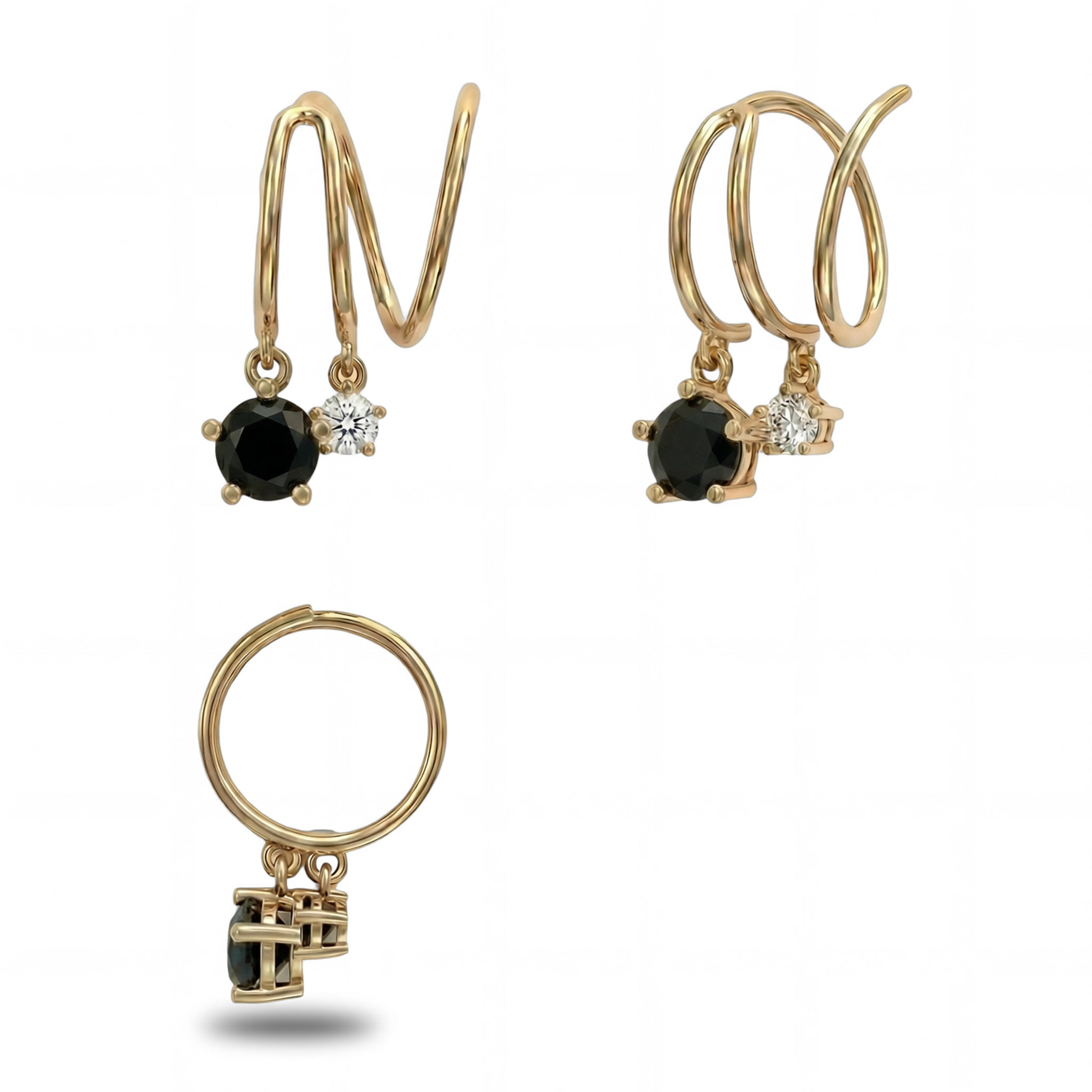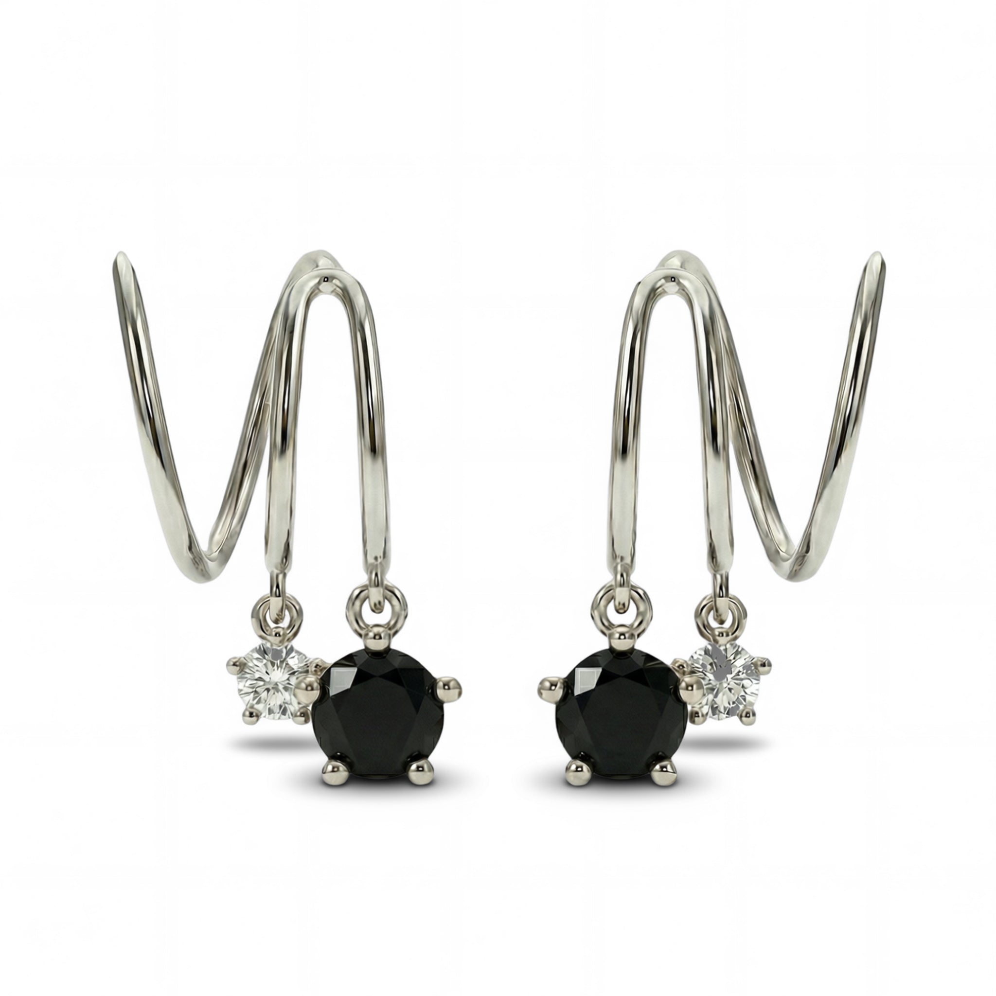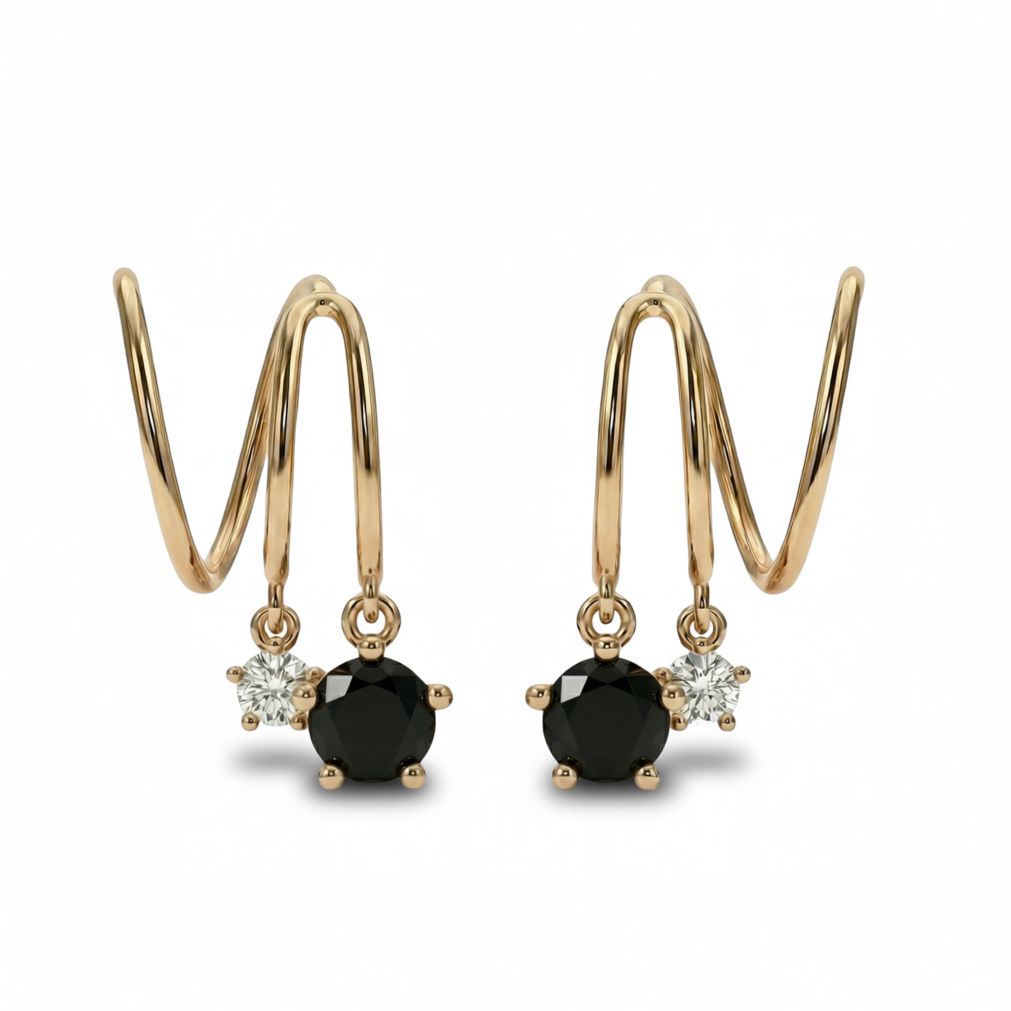 Black Onyx & Cubic Zirconia Spiral Hoop Twist Earrings