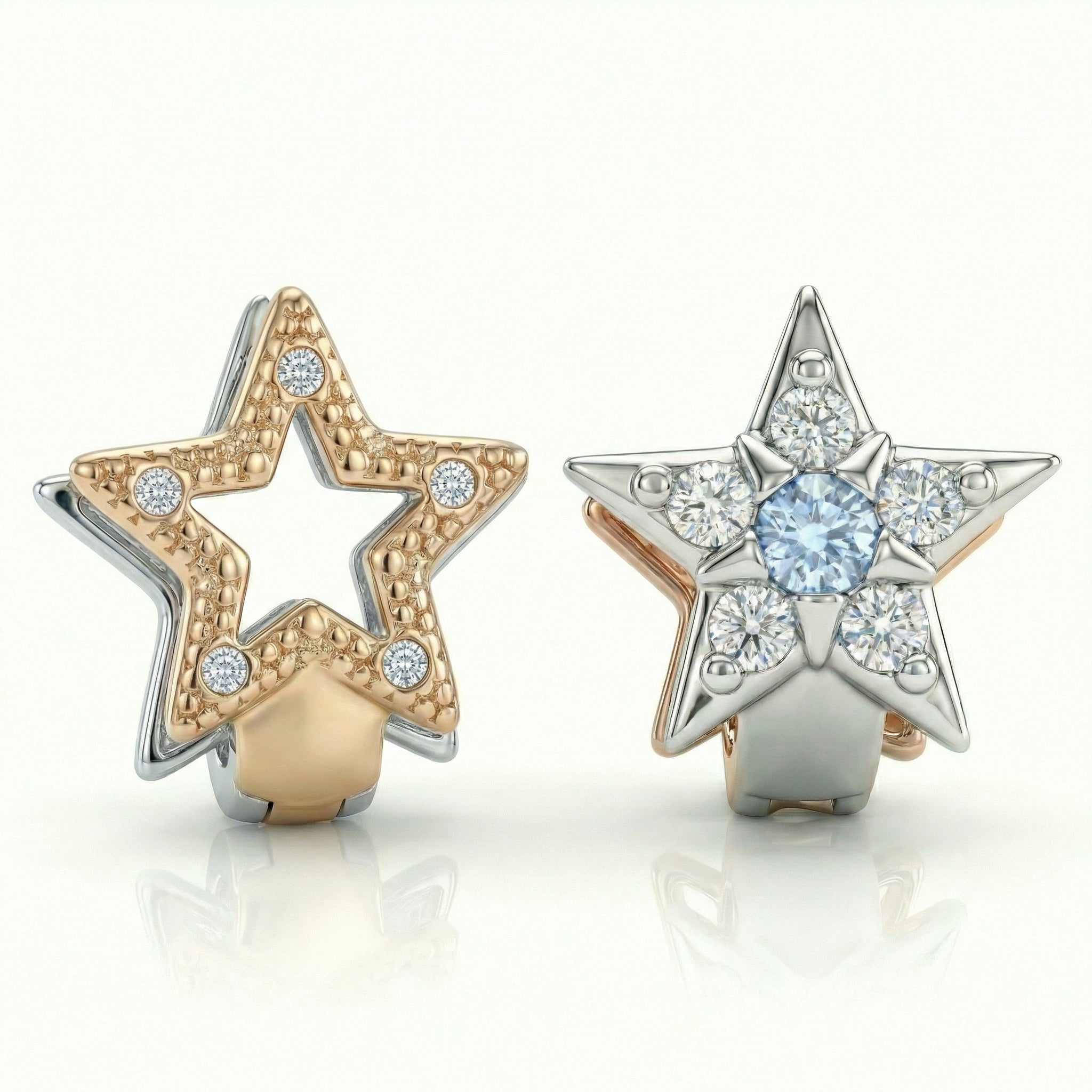 Meet the earrings that solve the gold or silver dilemma. Our Dual Radiance Star Huggie Earrings feature a clever two-tone design — champagne gold on one side with a delicate star cut-out, and polished silver on the other with sparkling CZ stones. Simply flip to match your mood, outfit, or jewellery stack. Perfect for both warm and cool skin tones, these versatile earrings give you two looks in one without buying extra pieces.