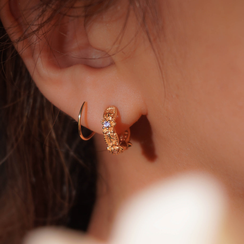 Introducing the Roseraie Bloom Spiral Hoop Twist Earrings, a graceful addition to our best-selling 1 Piercing into 2 collection — now reimagined with more intricate floral artistry and a larger, eye-catching hoop design. These earrings are crafted from premium 925 sterling silver, offering both luxury and lasting comfort for sensitive ears.