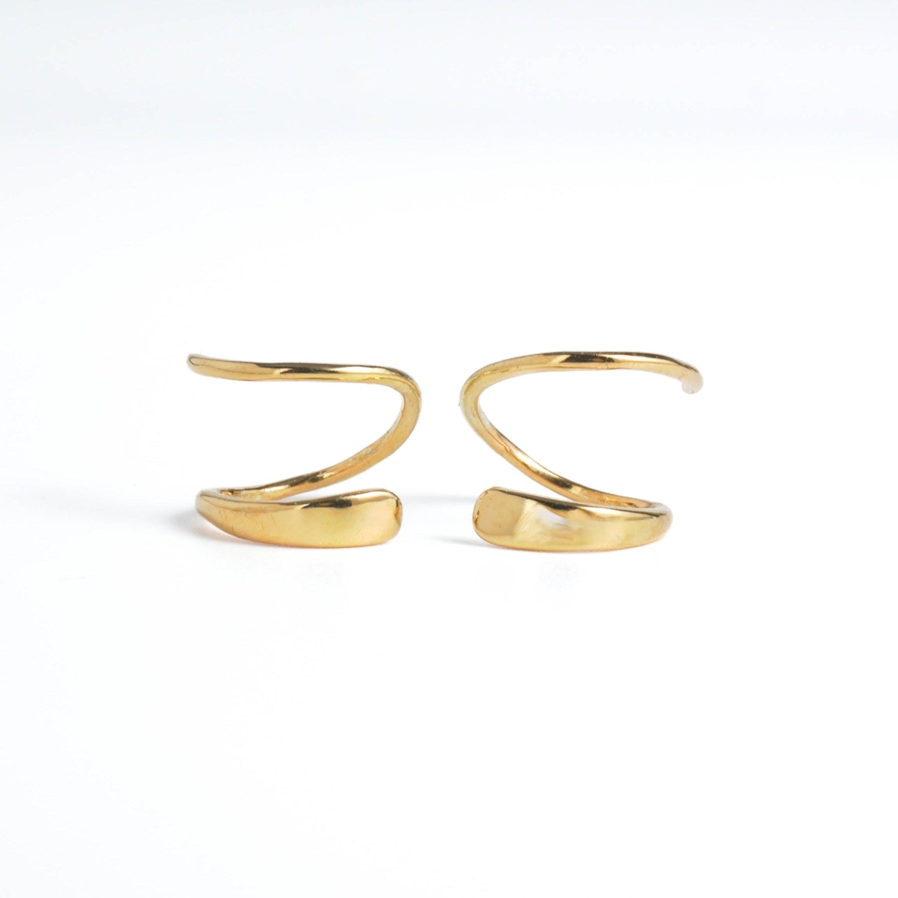 This is a thick version of our signature earrings 'Minimal Spiral Hoop Twist Earrings'. It looks more solid but not easy to bend like the thin version. Creating double piercing looks with only 1 ear hole needed. And they will look sweet on your ears. NO SECOND PIERCING NEEDED: Simply twist into a single piercing and get the look of double piercing. sThese trendy earrings twist into place creating the illusion of a double hoop. We just love these earrings. They are the perfect alternative to a stud. Sold as pair.