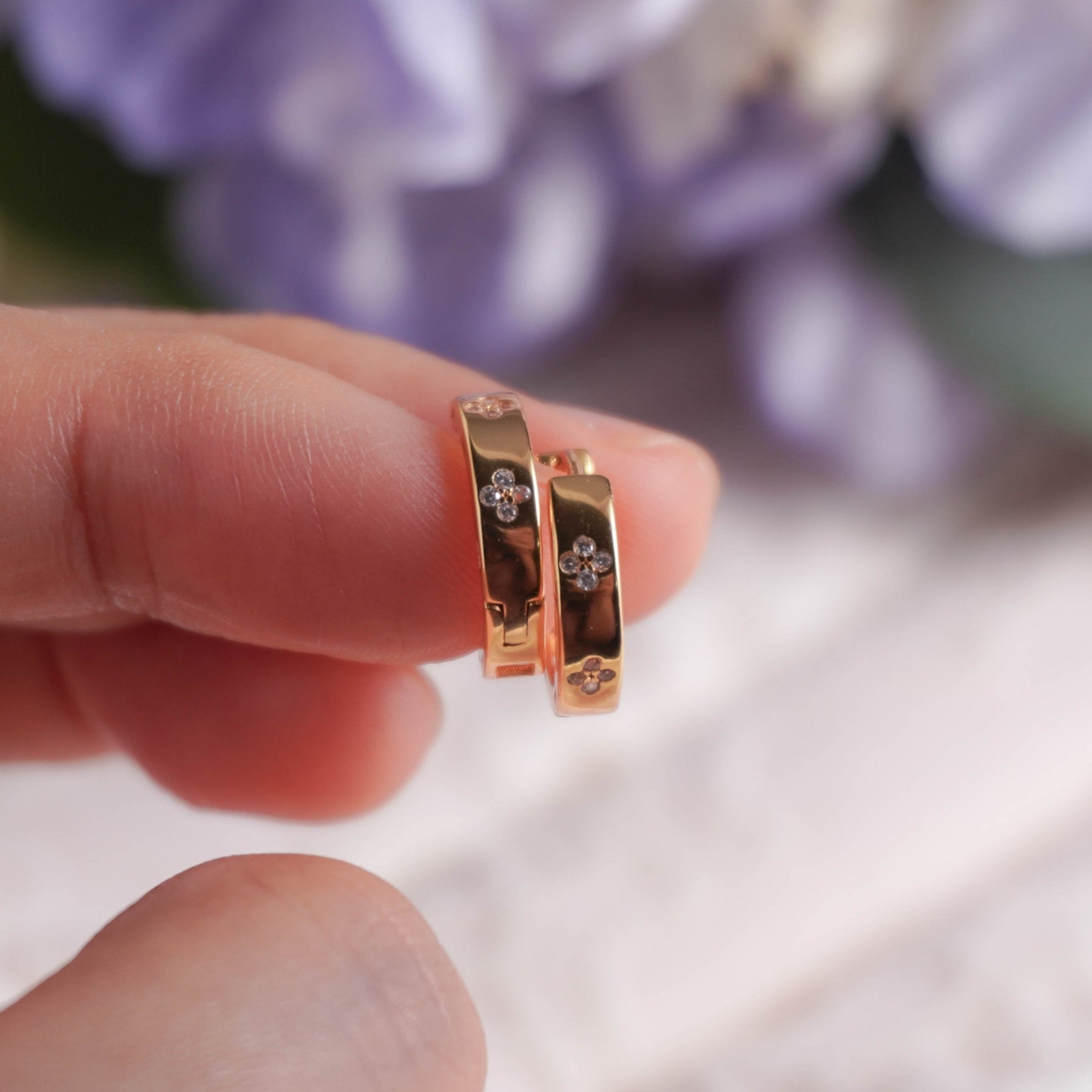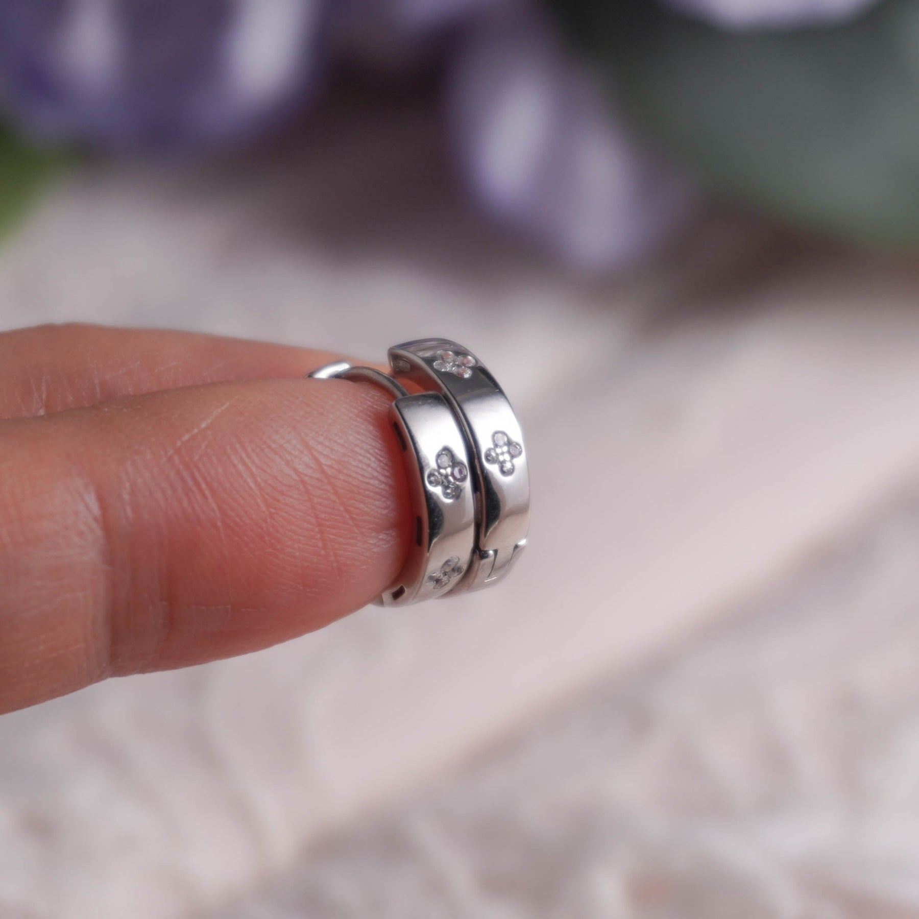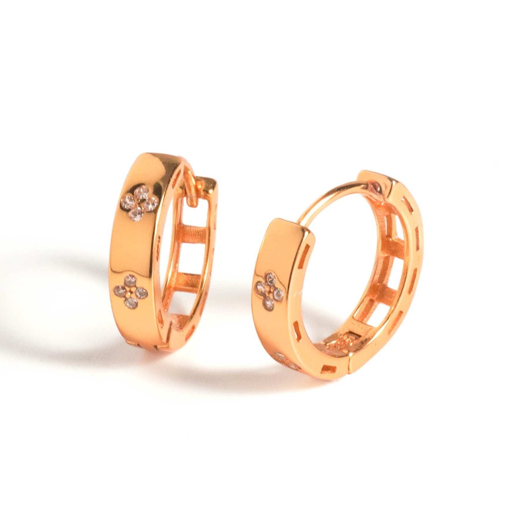 Like a little garden you can wear, these Bloom Petite Huggies bring tiny bursts of sparkle to your everyday look. Crafted in 925 sterling silver and available in both warm champagne gold and sleek rhodium finishes, they’re gentle on skin yet rich in charm. The delicate floral accents make them a subtle way to dress up jeans-and-tee days or add a soft glow to evening outfits. Perfect for those who love timeless jewelry with a playful twist, they’re the kind of hoops you’ll reach for again and again. Sold as pair.