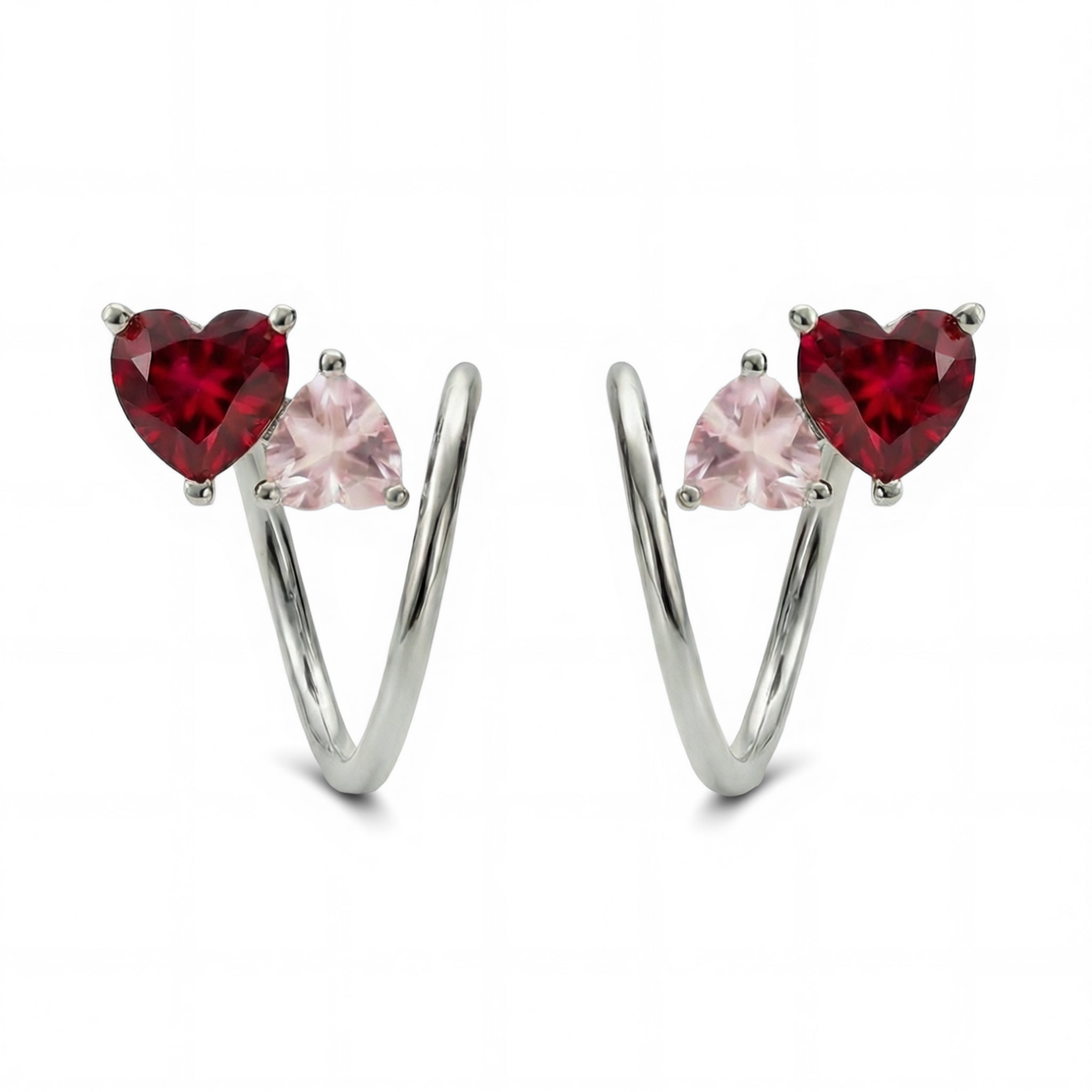 Garnet & Rose Quartz Heart Spiral Hoop Twist Earrings
