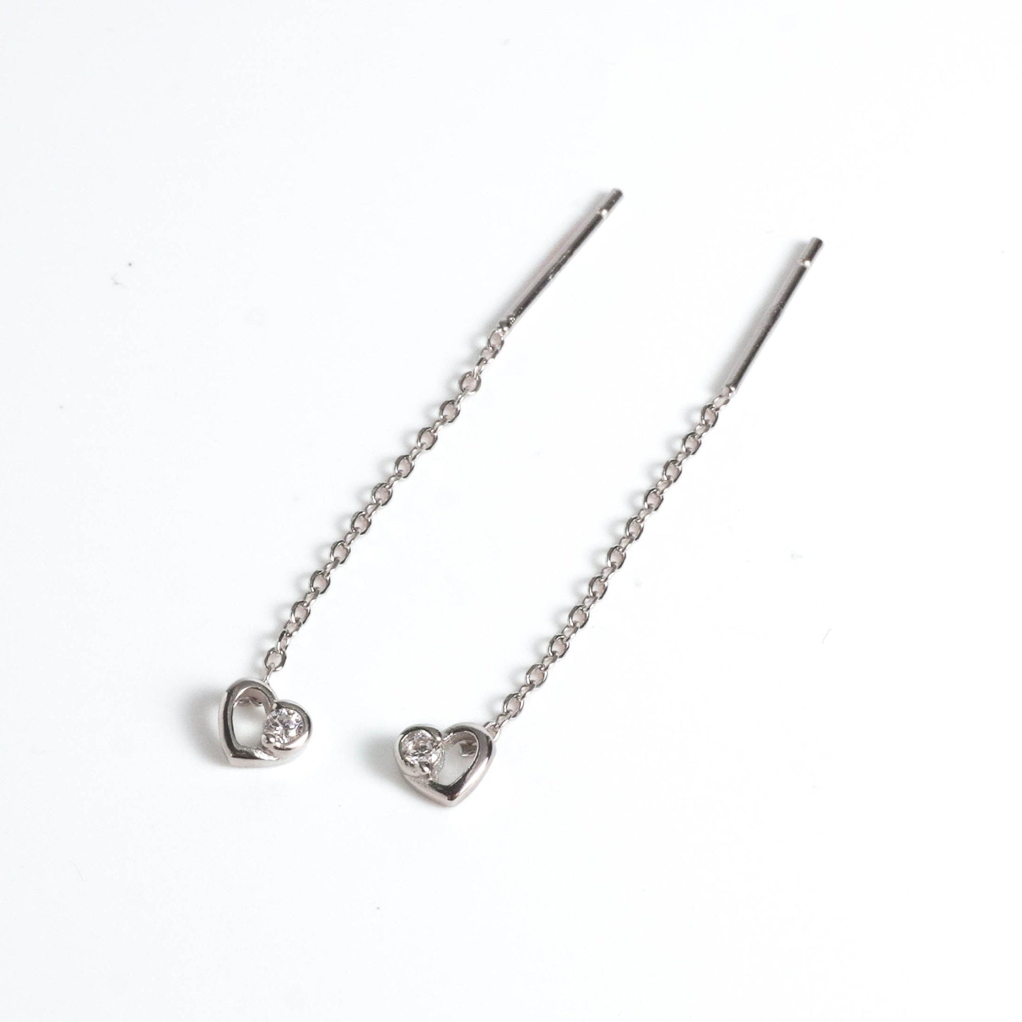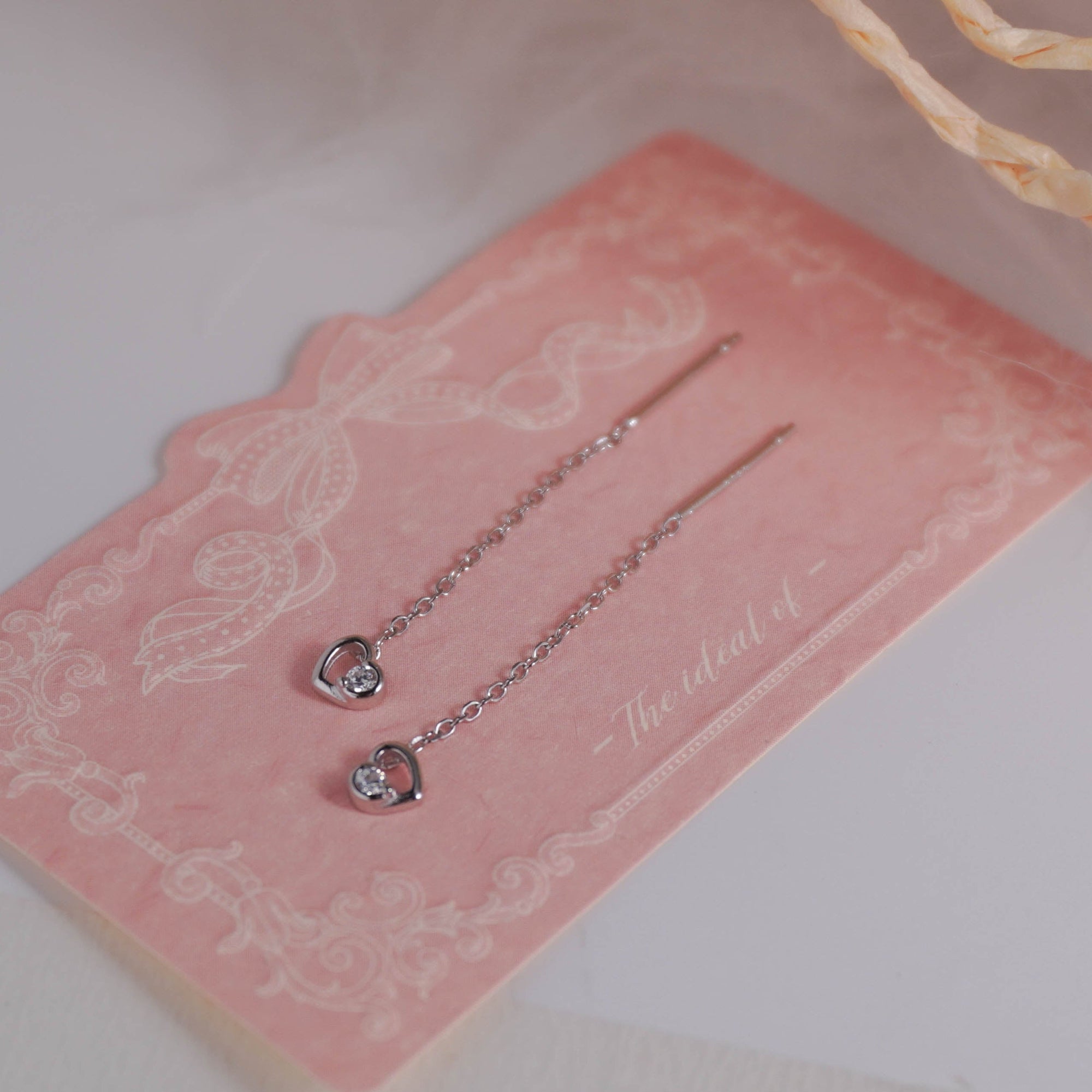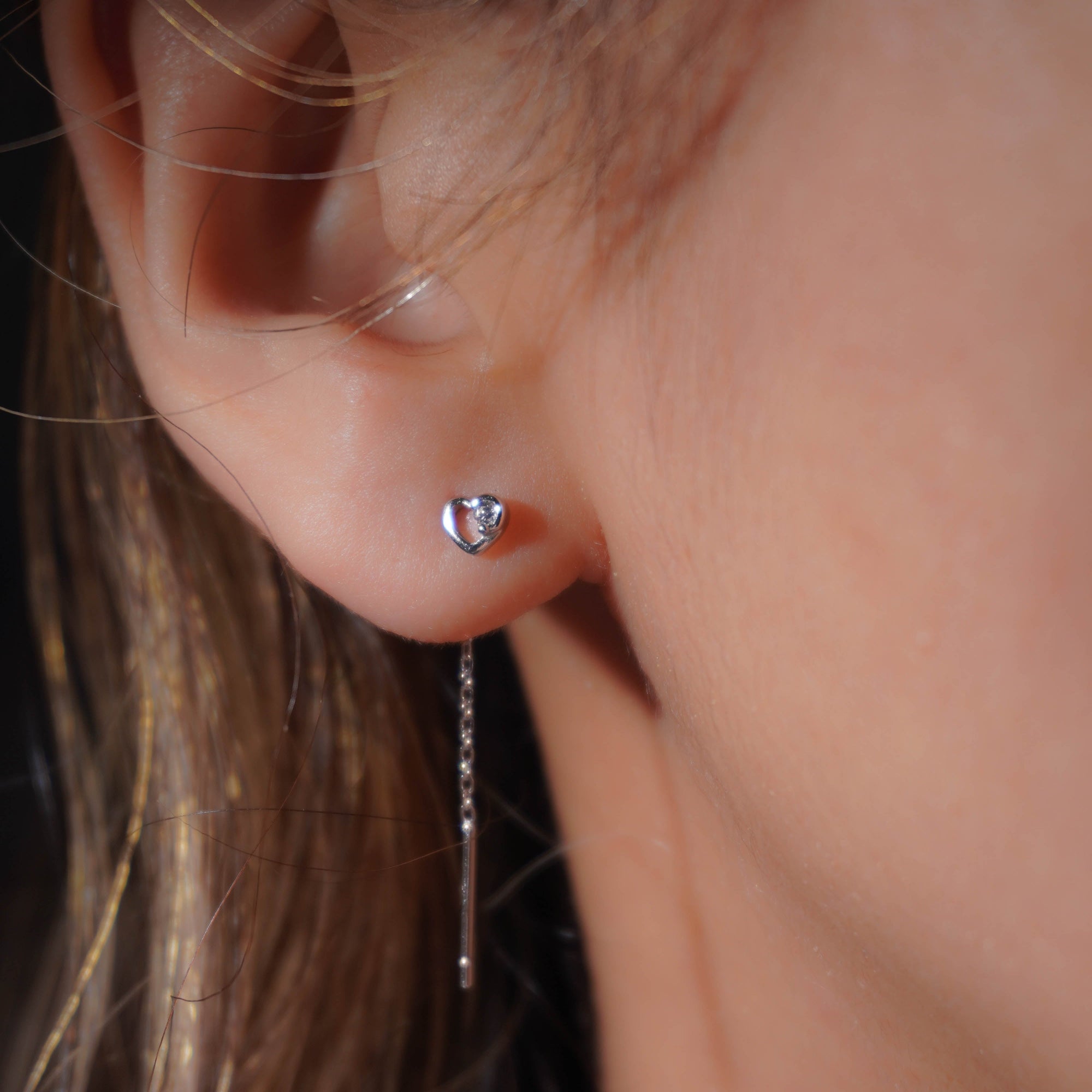 These threader earrings are all about quiet romance. A small open heart sits gently at the front, paired with a fine silver chain that moves naturally with you. Nothing loud, nothing overdone — just a subtle sparkle that feels personal and easy to wear.